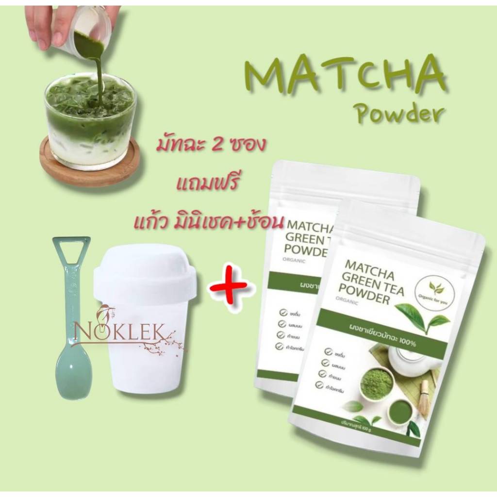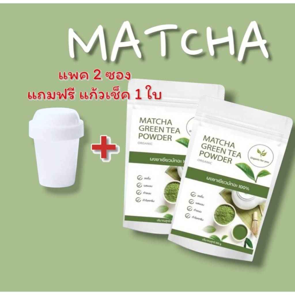 Organin for You ผงมัทฉะ100 กรัมx2 ซอง(2ซอง แถม แก้วเขย่า 1 ใบ+ช้อน)