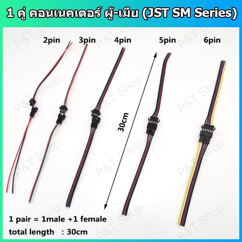 1 คู่ JST SM Series Connector คอนเนคเตอร์ ผู้-เมีย แบบ 2,3,4,5,6 ขั้ว( เลือกขั้วที่ต้องการ) พร้อมสายไฟยาว 15 เซนติเมตร