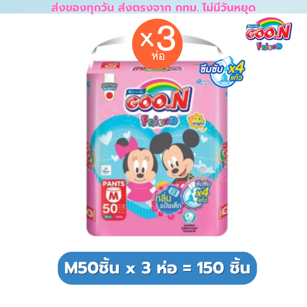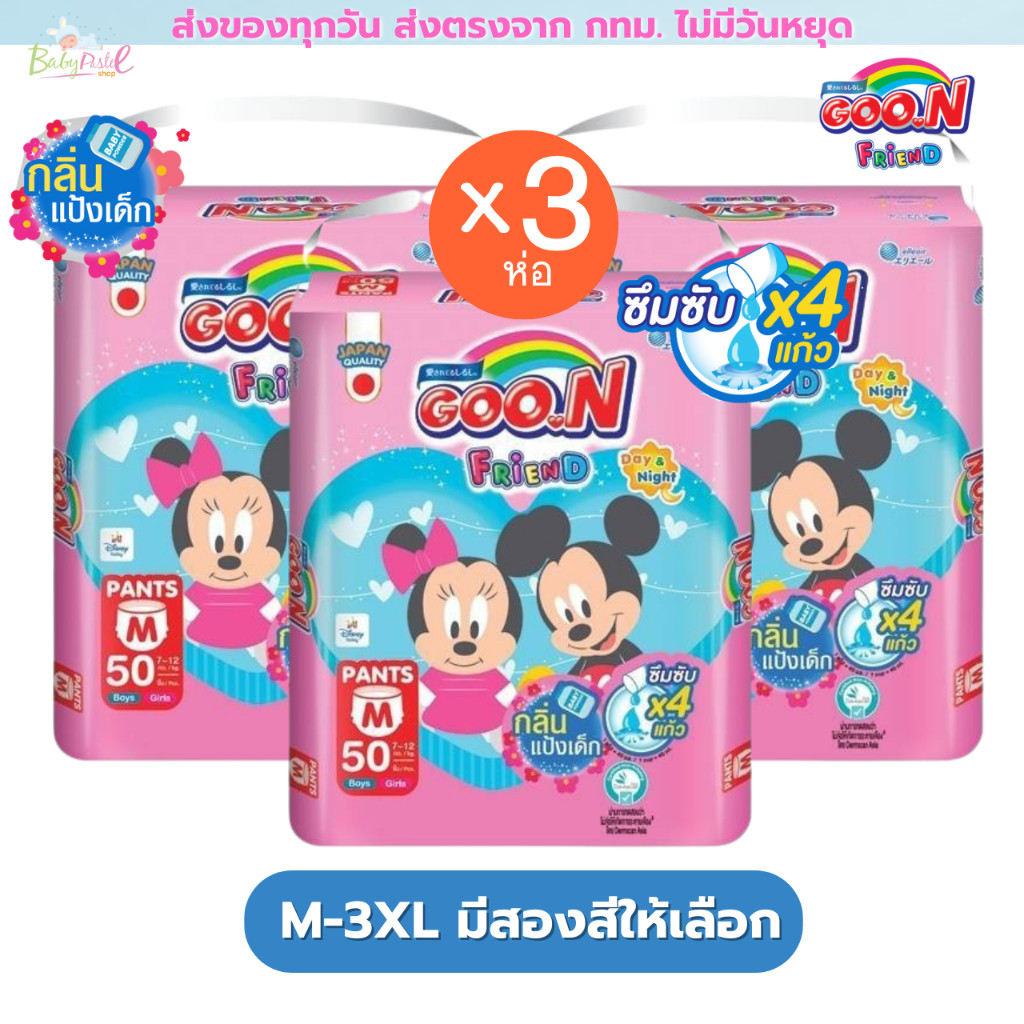 กูน Goon Friend ยกลัง 3 ห่อ เฟรนด์ แพมเพิส แบบกางเกง แป้งเด็ก(ชมพู) ขอบขากระชับ (น้ำเงิน) M-3XL