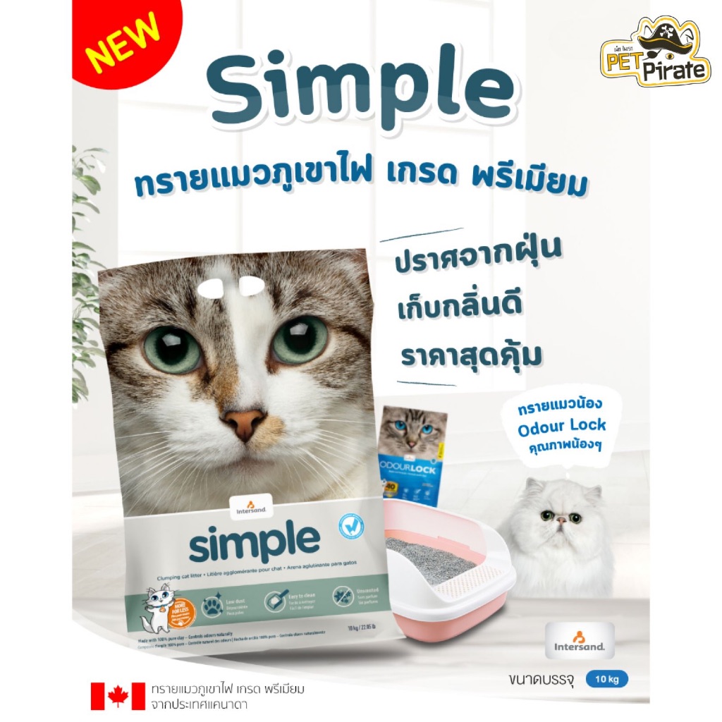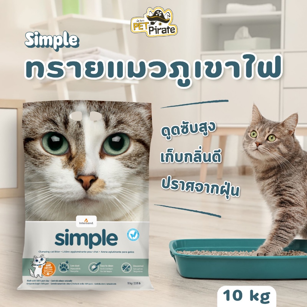 Simple ทรายแมวภูเขาไฟ เกรดพรีเมี่ยม ไร้ฝุ่น ดูดซับสูง จับตัวเป็นก้อนดี เก็บกลิ่นดี (ขนาดบรรจุ 10 กก.)