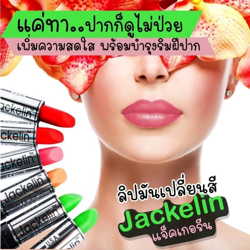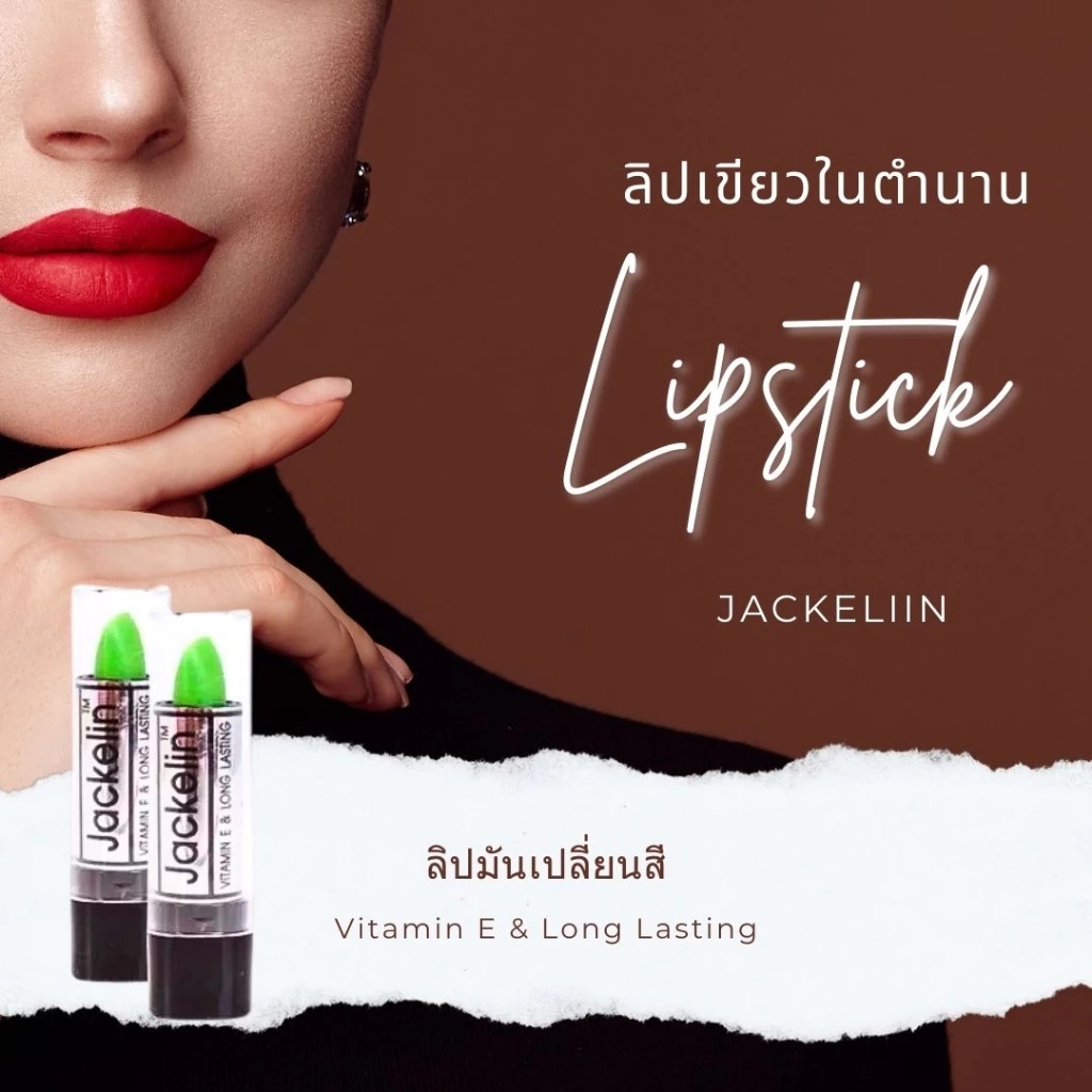 ลิปมันเปลี่ยนสี Jackelin คือความพรีเมียมของลิปในตำนานที่กลับมาสร้างความประทับใจจริงๆ ครับ เนื้อลิปนุ่มลื่นให้สัมผัสที่สบายริมฝีปาก ไฮไลท์พรีเมียมคือความสามารถในการเปลี่ยนสีตามค่า pH ของร่างกายให้สีชมพูระเรื่อที่เป็นธรรมชาติและติดทนนานมาก พร้อมส่วนผสมที่ช่วยบำรุงริมฝีปากให้ชุ่มชื้นไม่แห้งกร้าน บรรจุภัณฑ์แบบยกกล่อง 6 แท่งคละสีมีความคุ้มค่ามากสำหรับการใช้งานหรือแบ่งปันกับเพื่อนฝูง มั่นใจในความปลอดภัยด้วยเลขที่ใบรับแจ้งถูกต้อง คุ้มค่าและพรีเมียมพรีเมียมจริงๆ ครับ