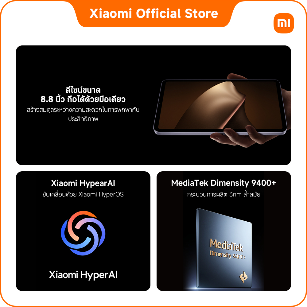 Xiaomi Pad Mini 12+512 ดีไซน์ขนาด 8.8 นิ้ว จอคมชัด 3K | ชิปเซ็ต MediaTek Dimensity 9400+ | แบตเตอรี่ขนาดใหญ่ 7500m