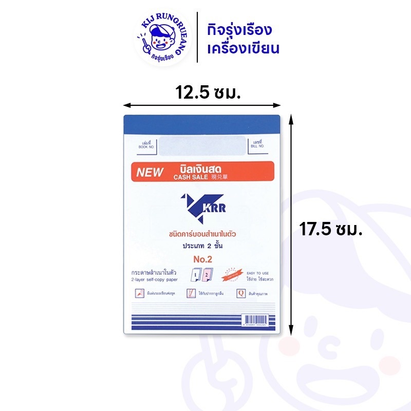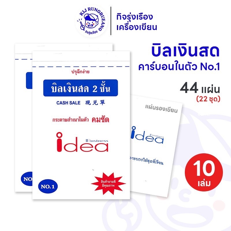 [5 เล่ม / 10 เล่ม] บิลเงินสด 2 ชั้น คาร์บอนในตัว เลือกได้เบอร์ No. 1 / No.2 / No.3 บิลเงินสดมีสำเนา