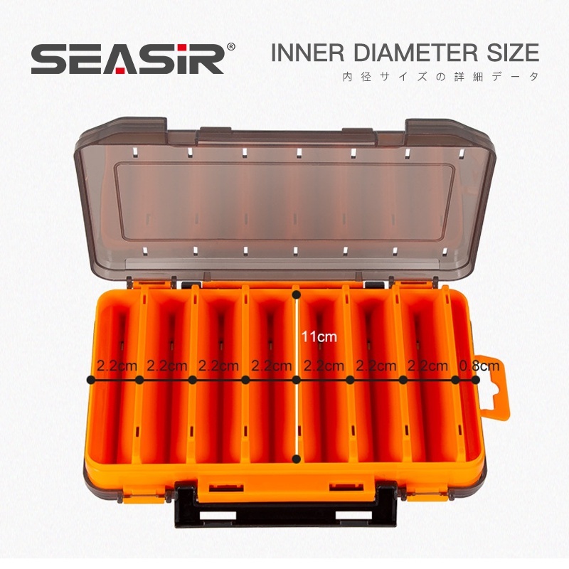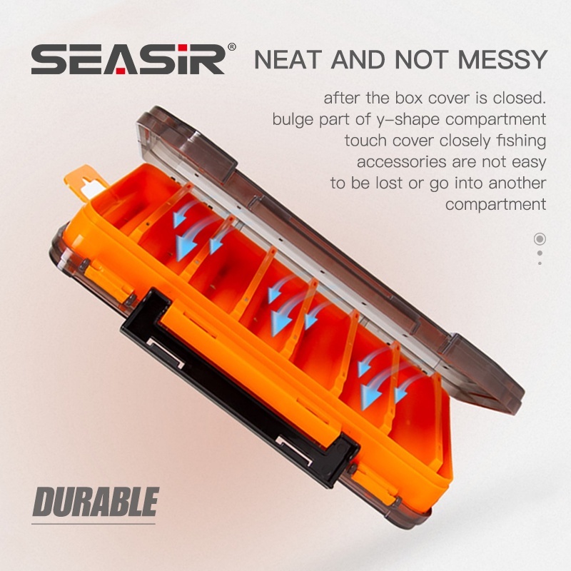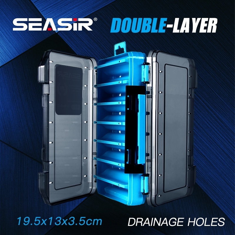 SEASIR Double Side Fishing Tackle Box กล่องใส่อุปกรณ์ตกปลาสองด้าน,กล่องพลาสติกสำหรับเก็บเหยื่อตกปลามีหลายช่อง