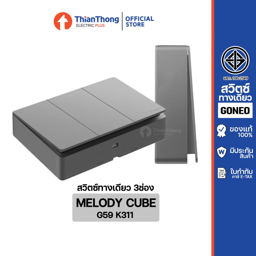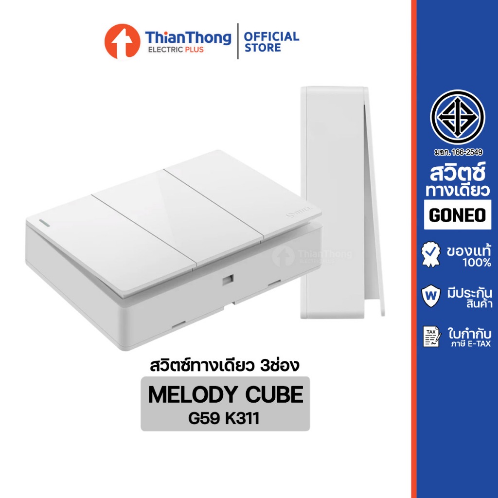 GONEO ชุดสวิตซ์ทางเดียวสำเร็จรูป ชนิดติดลอย ขนาด 3 ช่อง รุ่น Melody Cube G59-K311