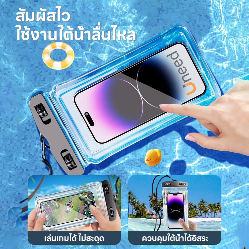 UNEED ซองกันน้ำ โทรศัพท์ กันน้ำได้ สัมผัสหน้าจอได้ ซองใส่โทรศัพท์กันน้ำ สำหรับสงกรานต์