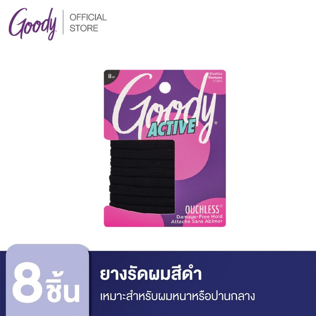 Goody ยางรัดผม ทรงแบนสีดำ 8 เส้น สำหรับผมหนาหรือปานกลางหรือชอบออกกำลังกาย ยืดหยุ่นได้ดี ทำให้ไม่กินเส้นผม