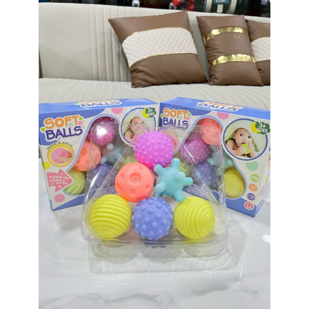 ลูกบอลนิ่มบีบมีเสียง (1กล่องมี6ลูก) ของเล่นเด็ก เป็นยางกัดได้ No.XC1866