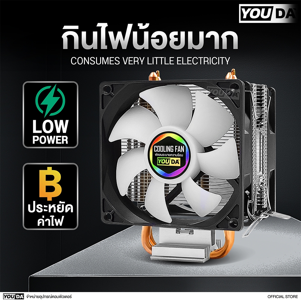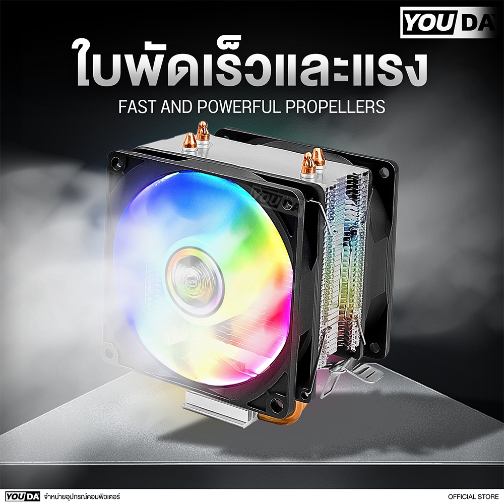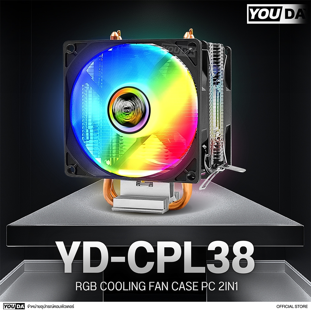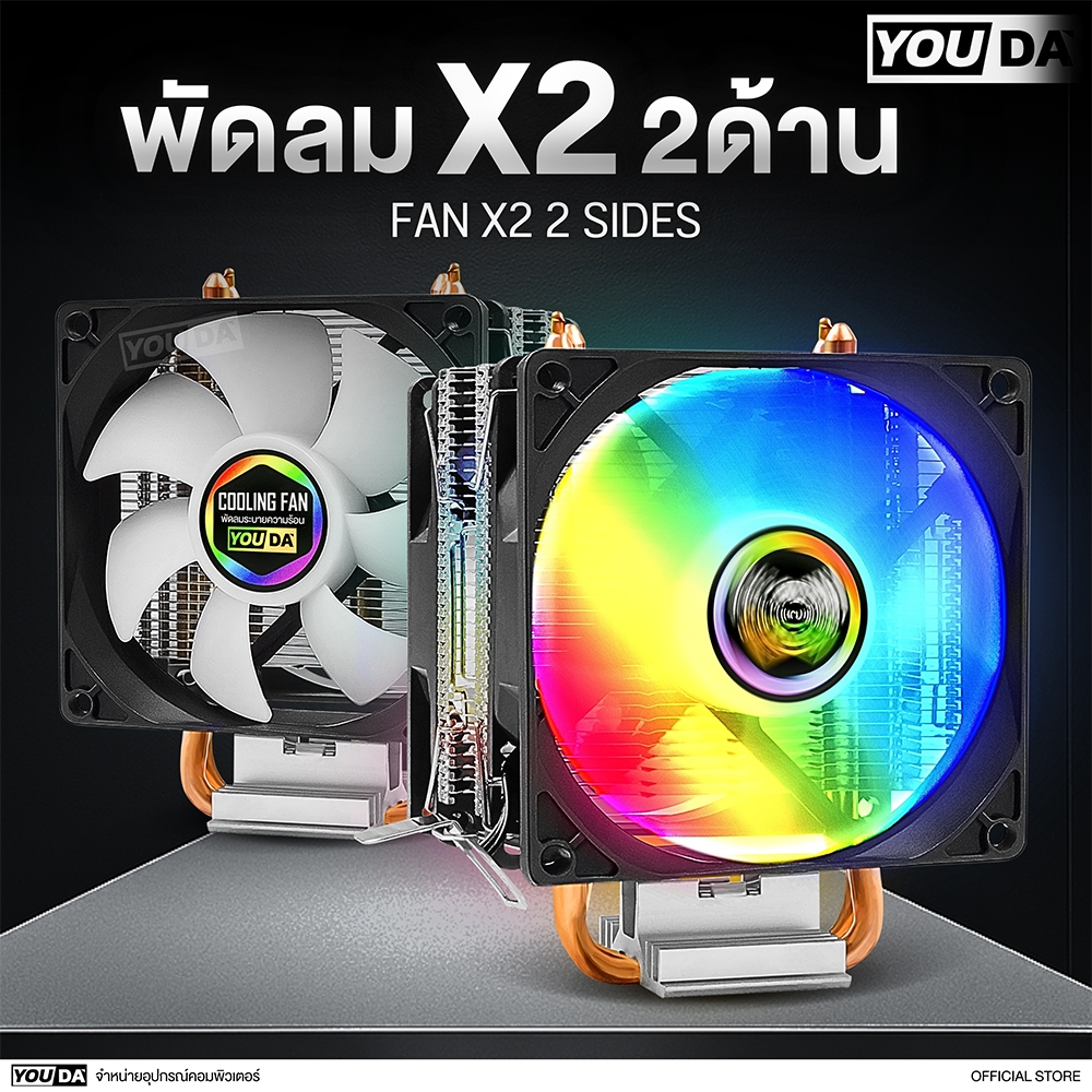 YOUDA พัดลมระบายความร้อน LED รับประกัน 1ปี พัดลม 2ด้าน 2ท่อระบายความร้อน 3PIN YD-CPL38 พัดลมคอมพิวเตอร์ CPU Cooler Fan