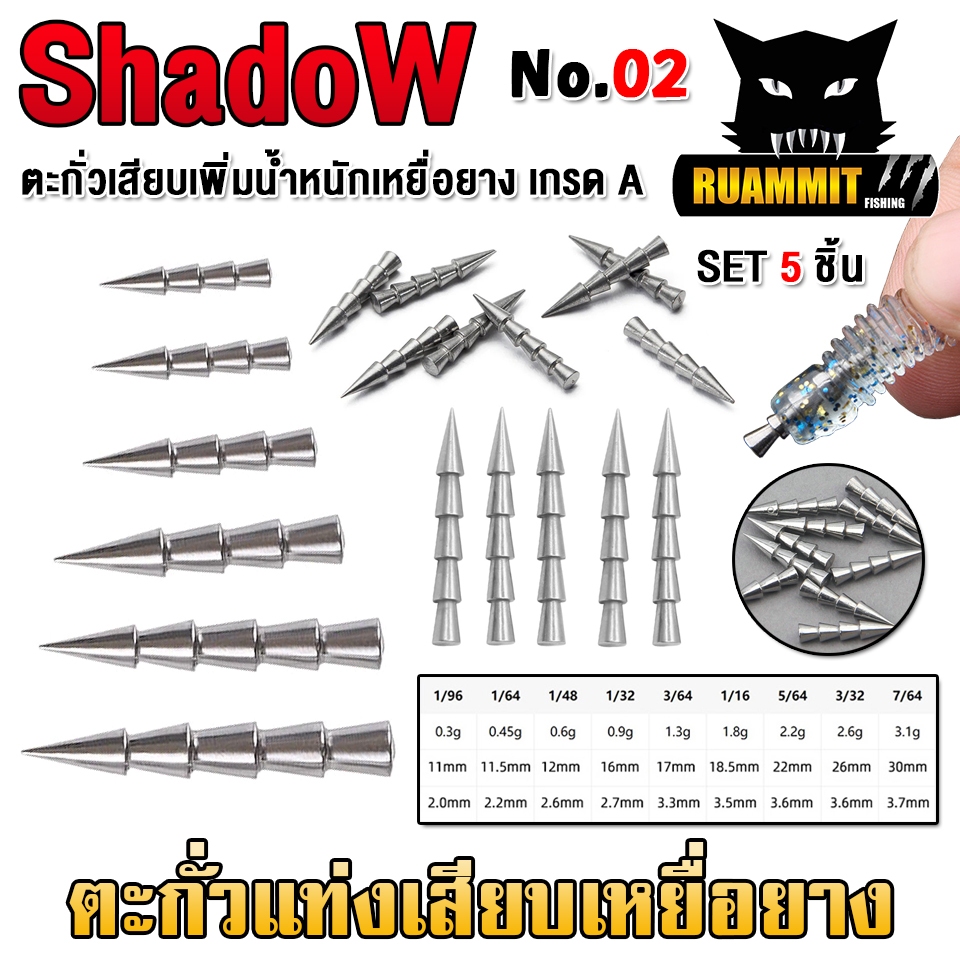อุปกรณ์เสริม ตะกั่วแท่งเสียบเหยื่อยาง เกรด A No.02 By SHADOW (SET 5 ชิ้น)