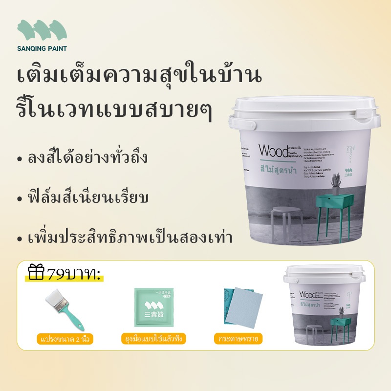 SanQing Paint【ชุดฟรี】สีทาไม้ สีไม้ สีย้อมไม้ สีน้ำไม้ กันน้ำ กันรา สีขาว สีเทา สีดำ ทาไม้