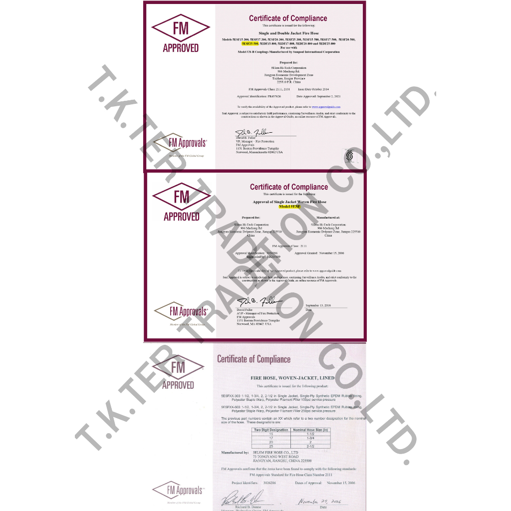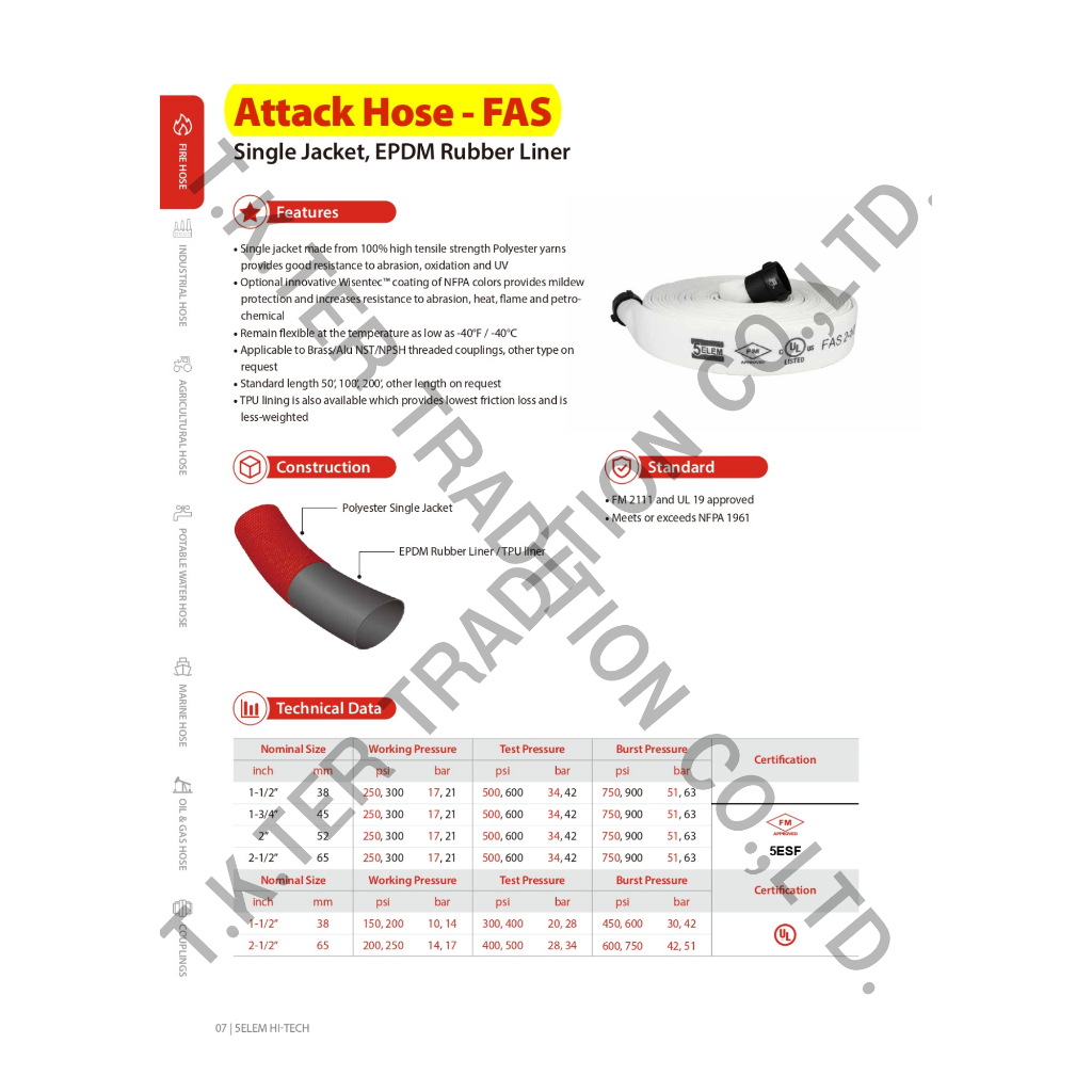 (มีราคาส่ง) สายส่งน้ำดับเพลิงชนิดผ้าใบ ยี่ห้อ 5ELEM รุ่น FAS ขนาด 1.5",2.5" ได้รับมาตรฐาน FM