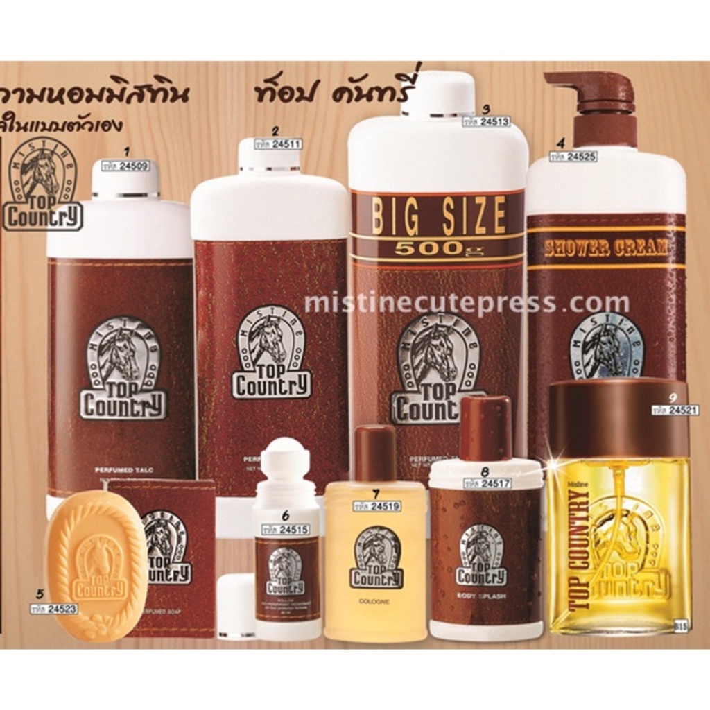 แป้งหัวม้า มิสทิน ท็อป คันทรี่ Mistine Top Country Perfumed Talc 100/200/400/600 g.