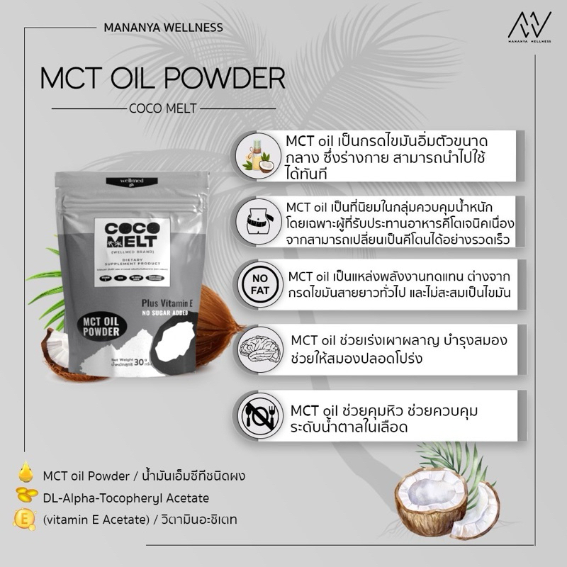 ✔️ผงมะพร้าวสกัด Mct Oil 100% 4 ซอง ไขมันดี ดีต่อหัวใจและสมอง