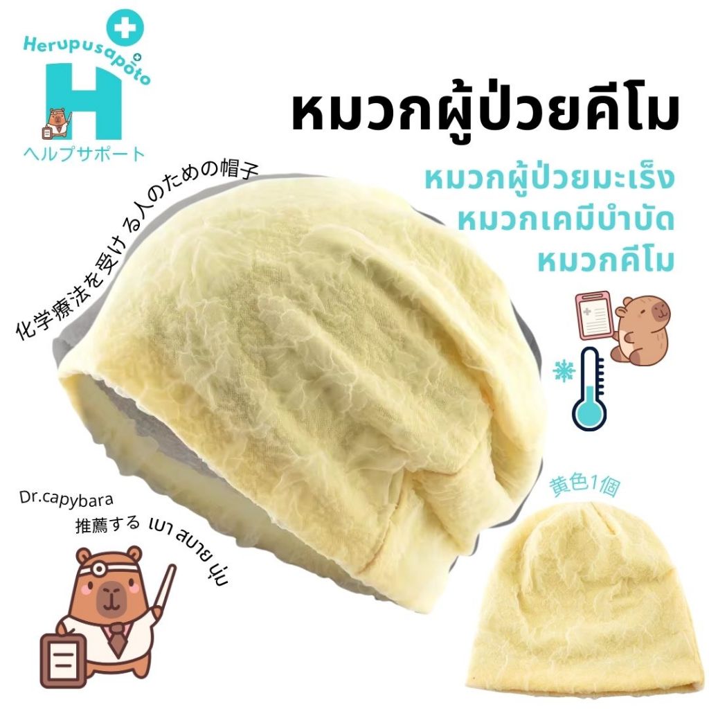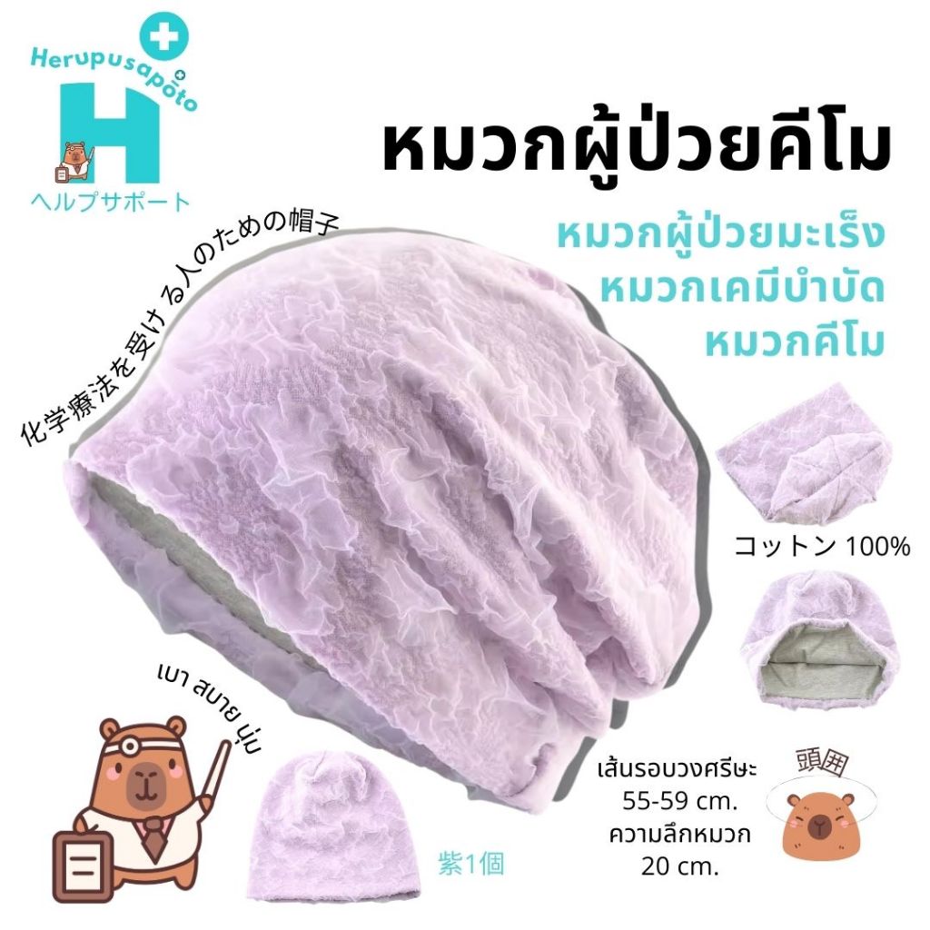 หมวก มะเร็ง สไตล์ญี่ปุ่น แบรนด์ herupusapoto หมวกผู้ป่วยมะเร็ง หมวกคีโม หมวกสำหรับผู้ให้คีโม