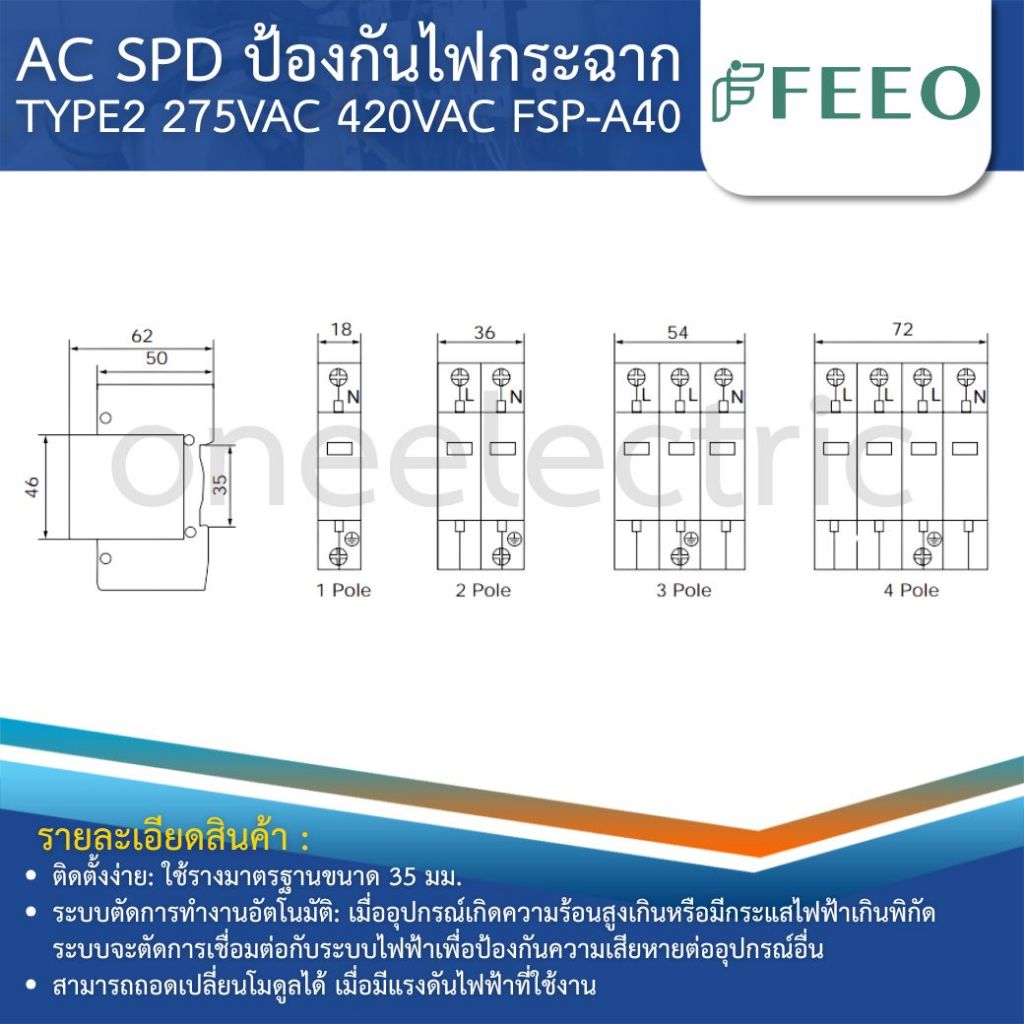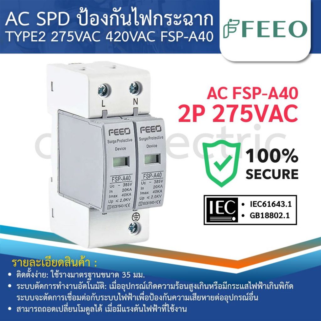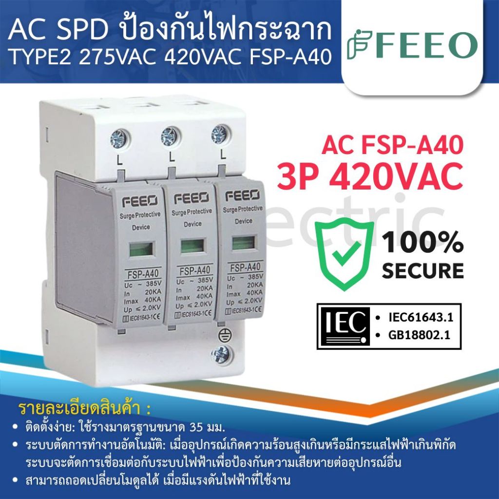 FEEO FSP-A40 AC SPD อุปกรณ์ป้องกันไฟกระชาก 1P 2P 275VAC 3P 4P 420VAC 20-40KA SURGE PROTECTIVE DEVICE