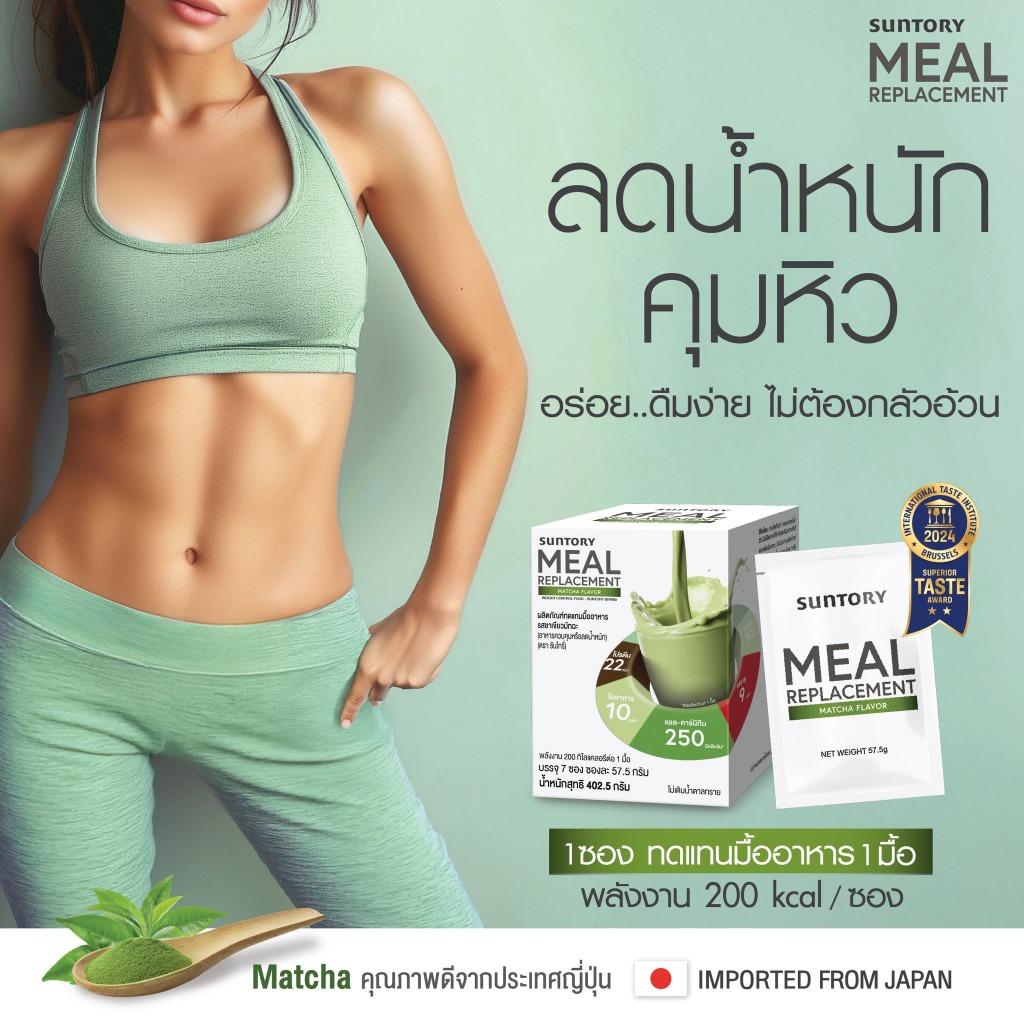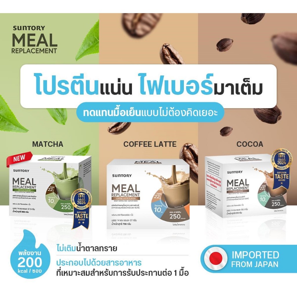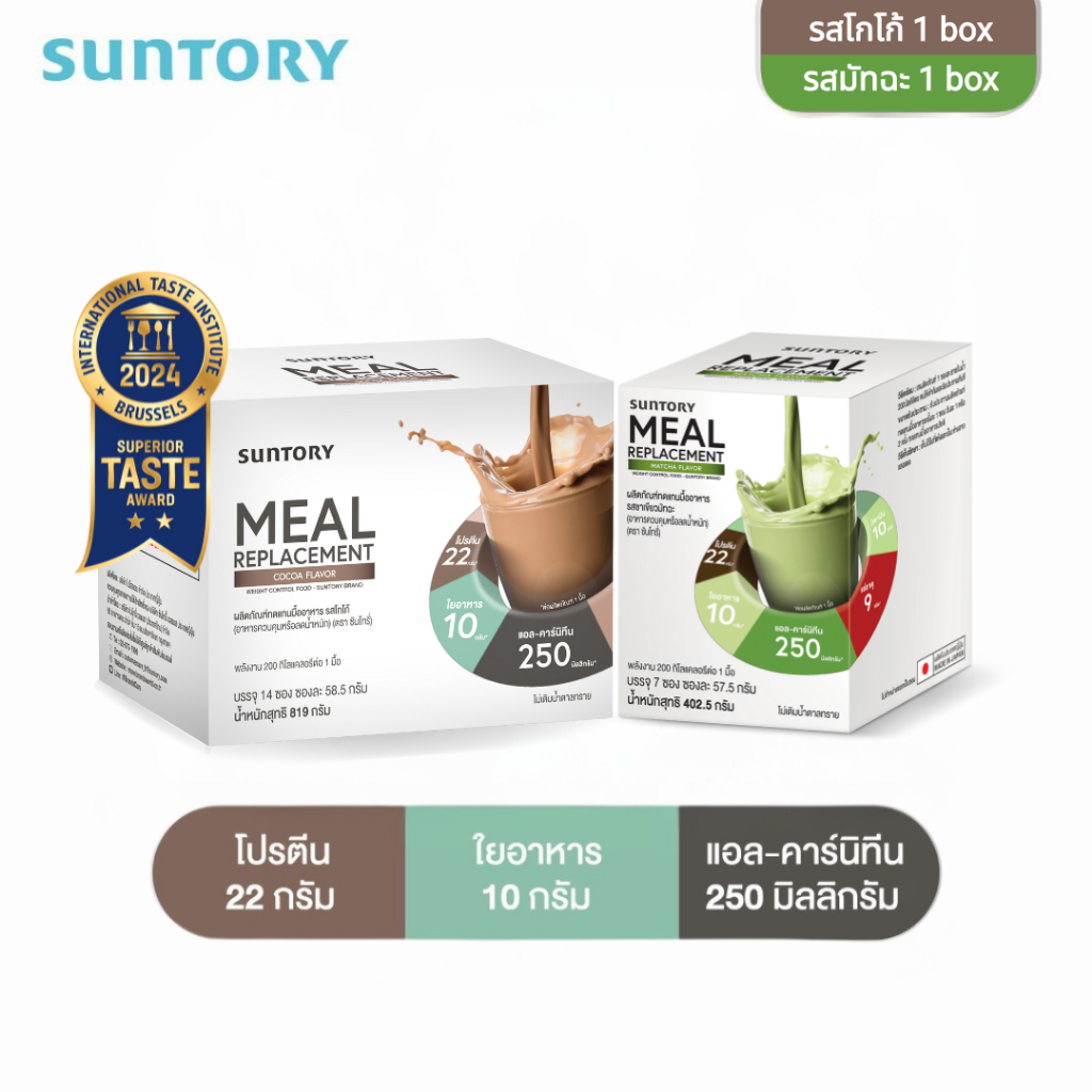 Meal Replacement Suntory [MRP เซ็ทคู่ โกโก้ 14 ซอง + ชาเขียว 7 ซอง] ผลิตภัณฑ์ทดแทนมื้ออาหาร - อาหารควบคุมหรือลดน้ำหนัก