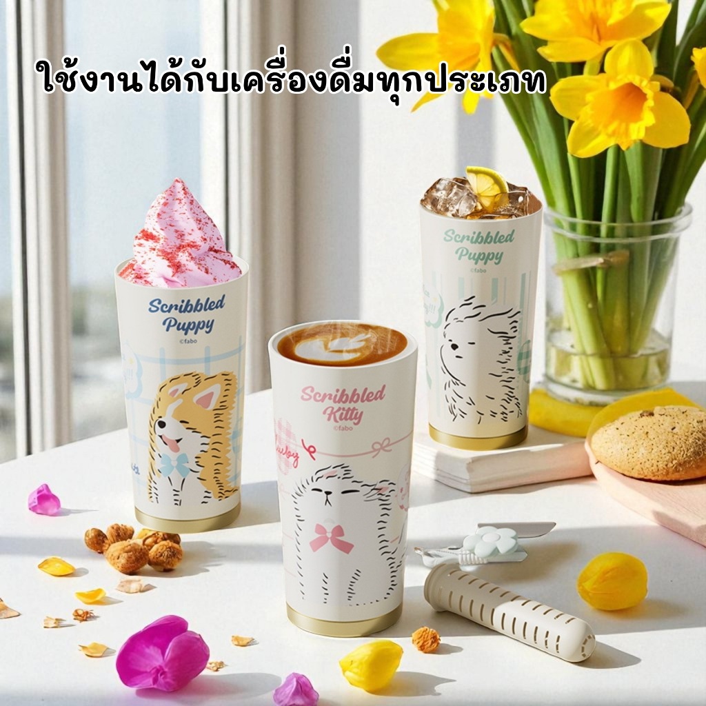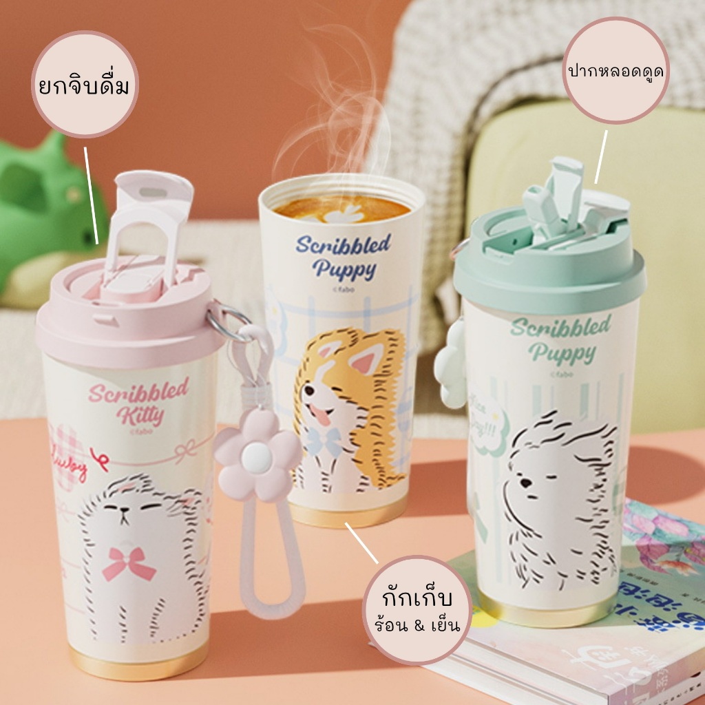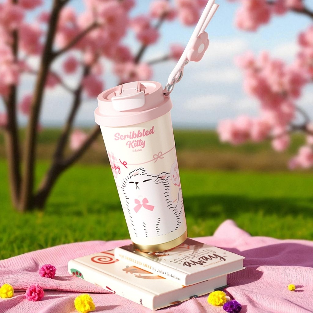 XIAOJU แก้วขนาด 520ml เคลือบเซรามิกซับในอีกชั้นด้วย SUS316L กักเก็บทั้งร้อน & เย็น 2 หัวดื่มใน 1 ฝา