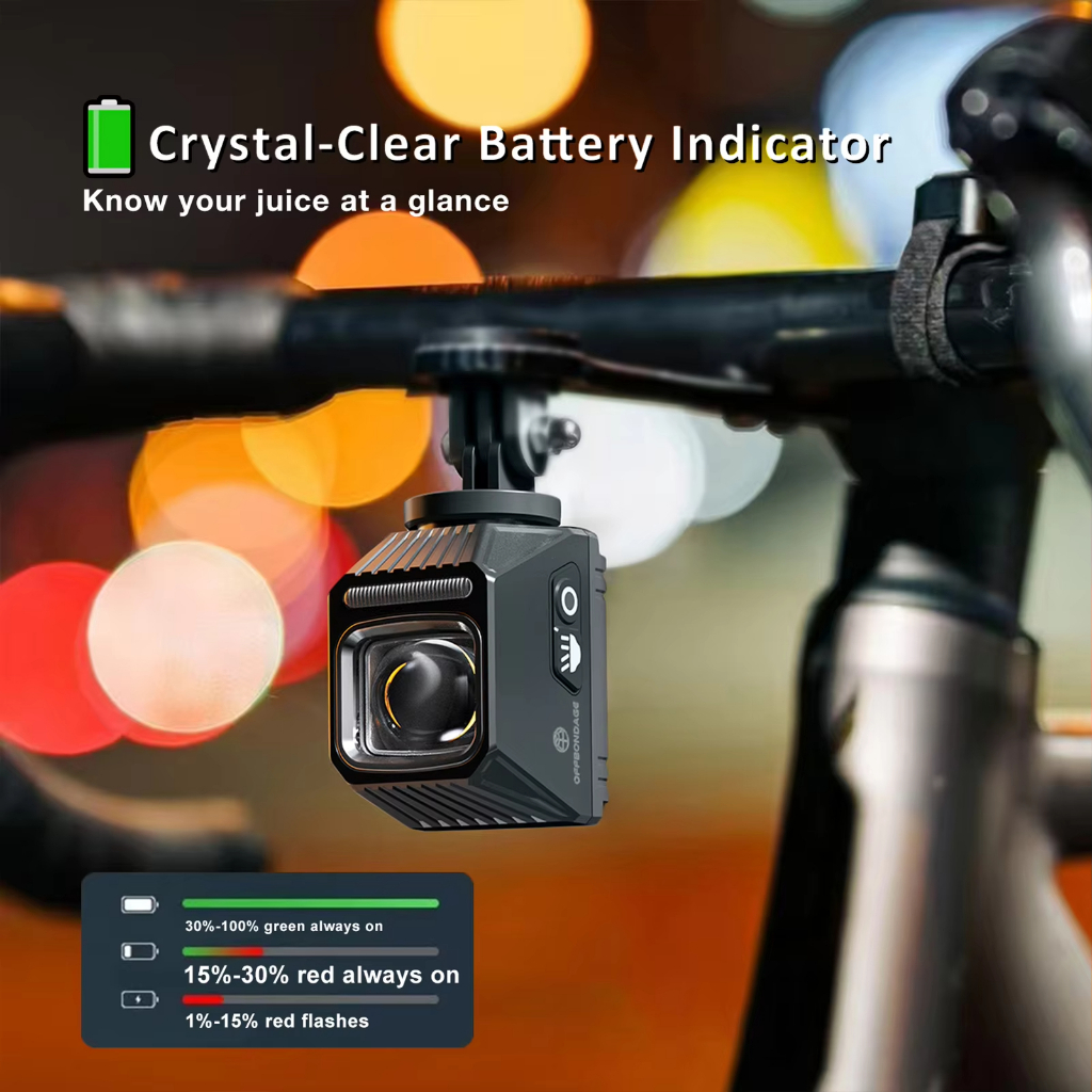 OFFBONDAGE IPX4 ไฟจักรยานกันน้ำ USB Type C เพื่อความปลอดภัยตอนขี่กลางคืน