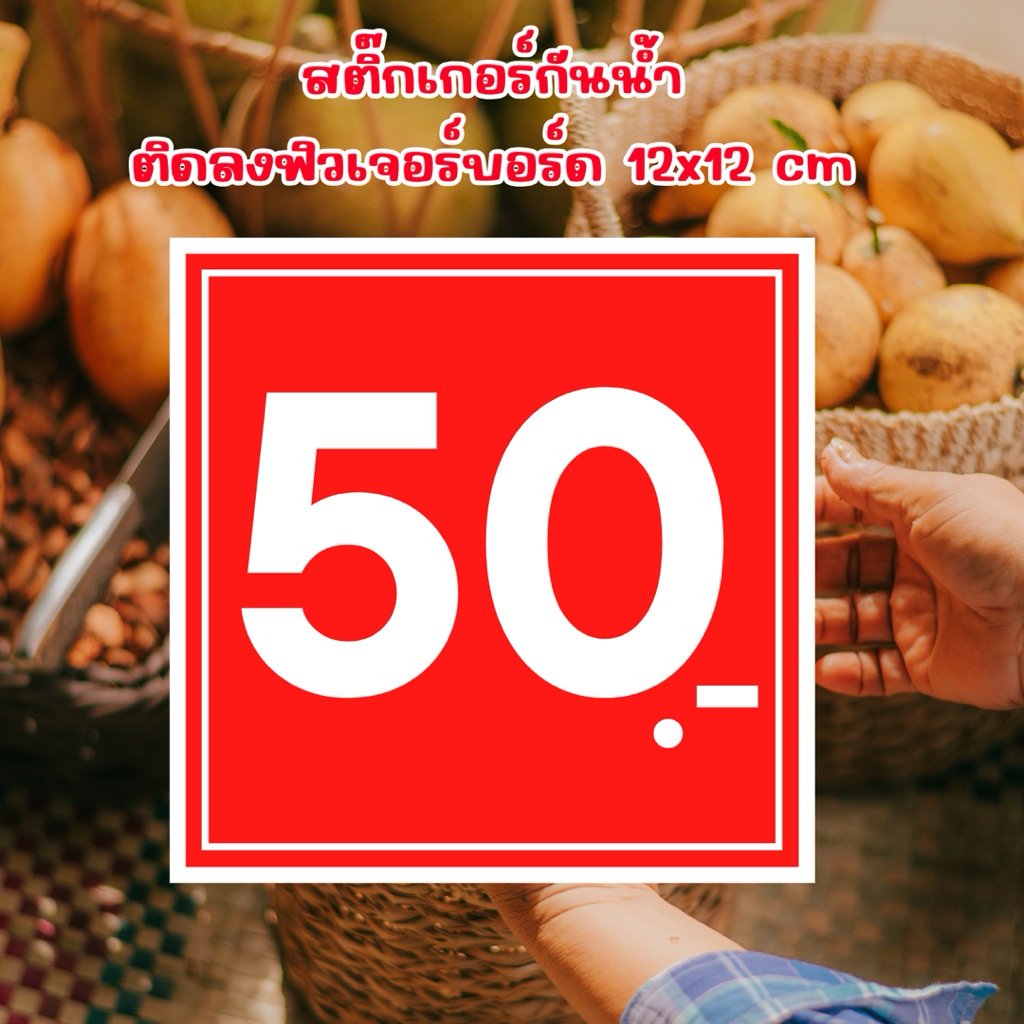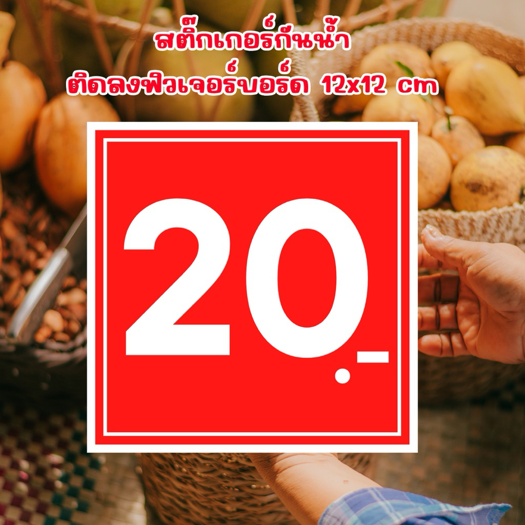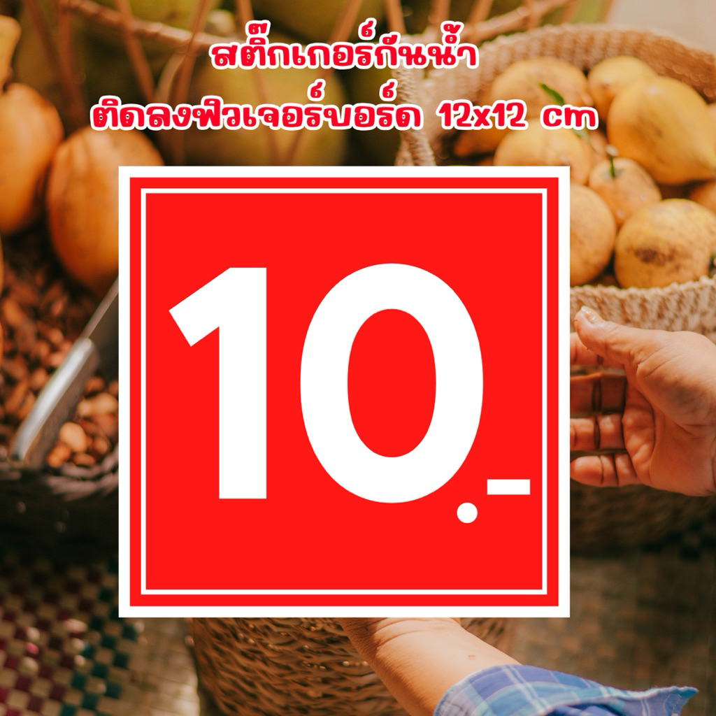 ป้ายราคา สีแดง อักษรสีขาว 12×12 ซม. ป้ายสินค้า ป้ายราคาสำเร็จรูป กันน้ำ ฟิวเจอร์บอร์ด สติกเกอร์