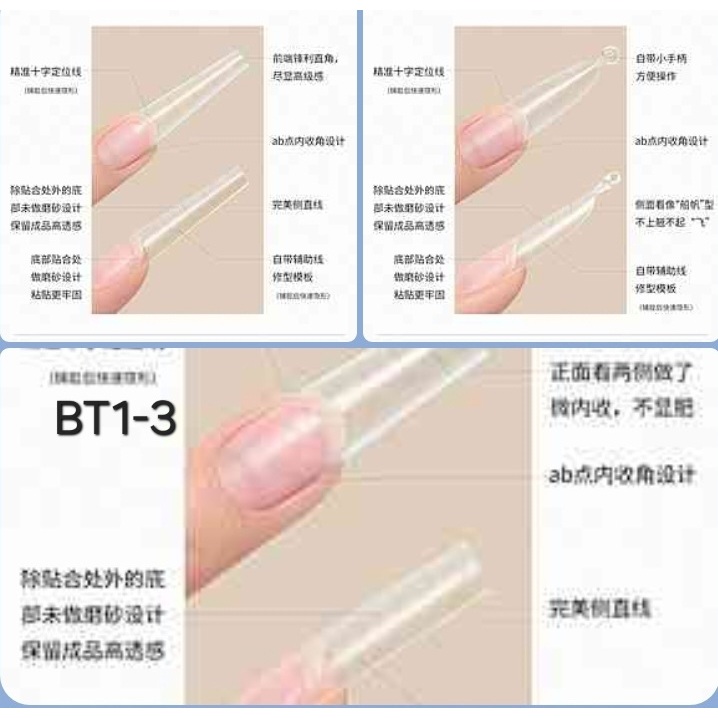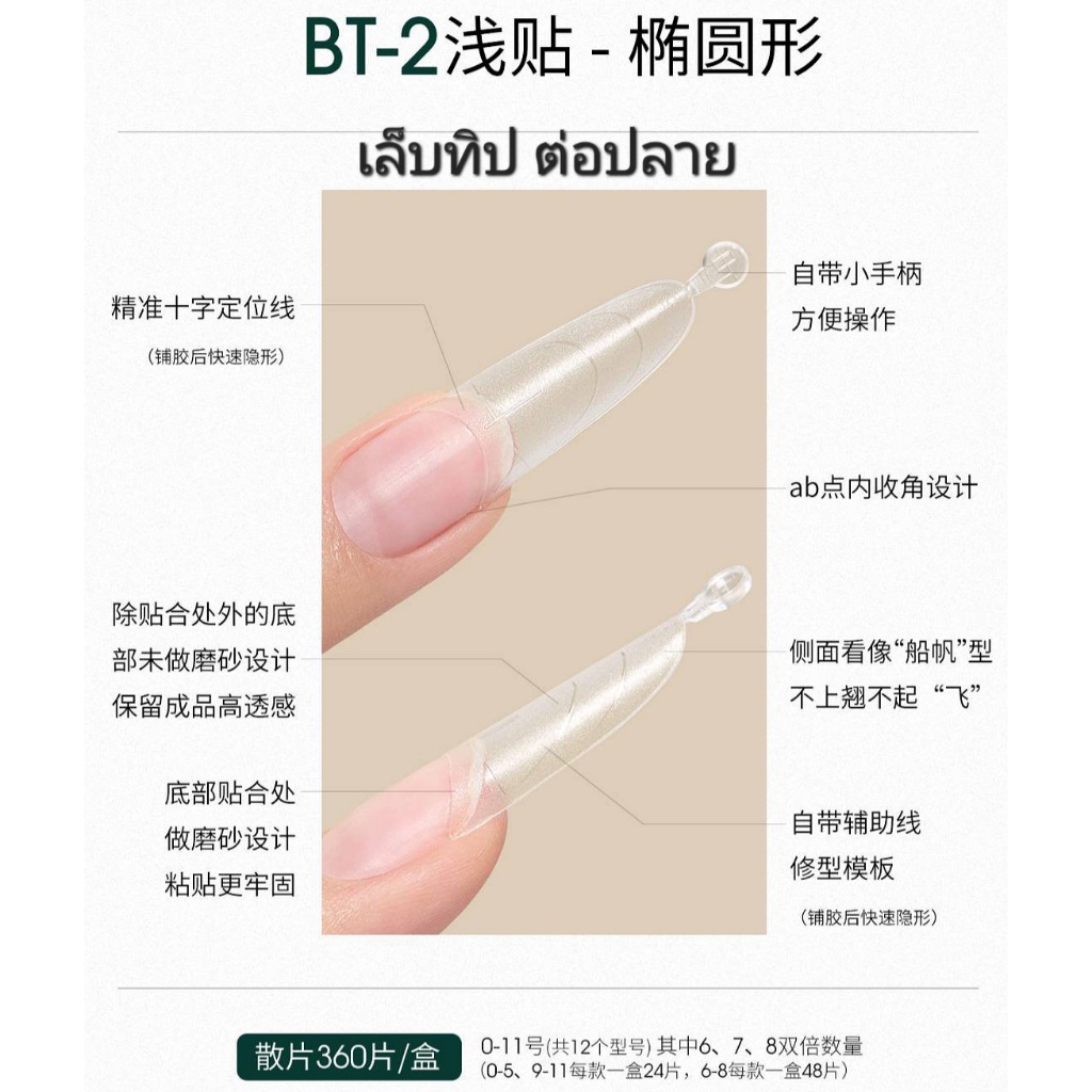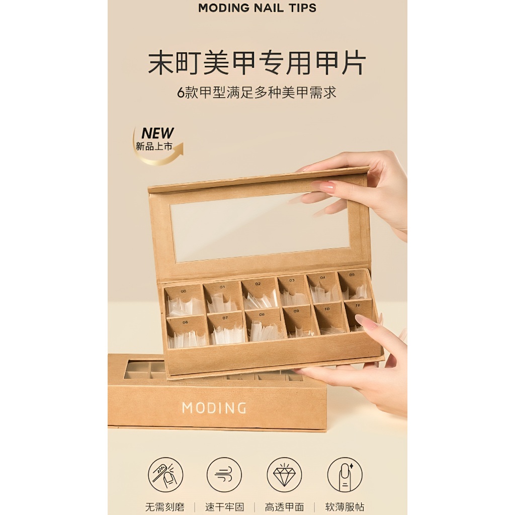 MODING BT1-5 PVC Tip 5 ทรง ต่อปลายเล็บ แบบกล่อง 360pcs 12size สีใสเนื้อบาง