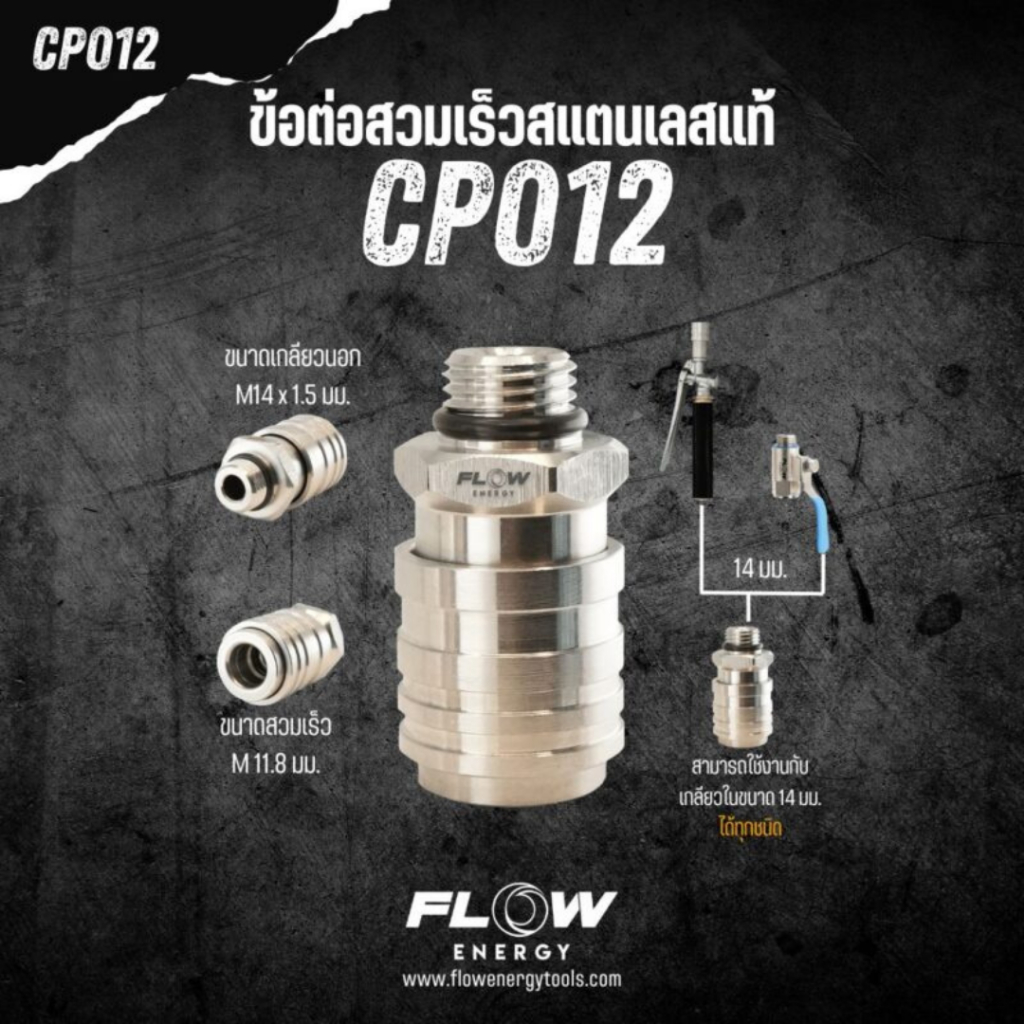 Flow Energy ข้อต่อสวมเร็วสแตนเลสแท้ Fast Coupling เกลียวใน-เกลียวนอก M14x1.5mm.