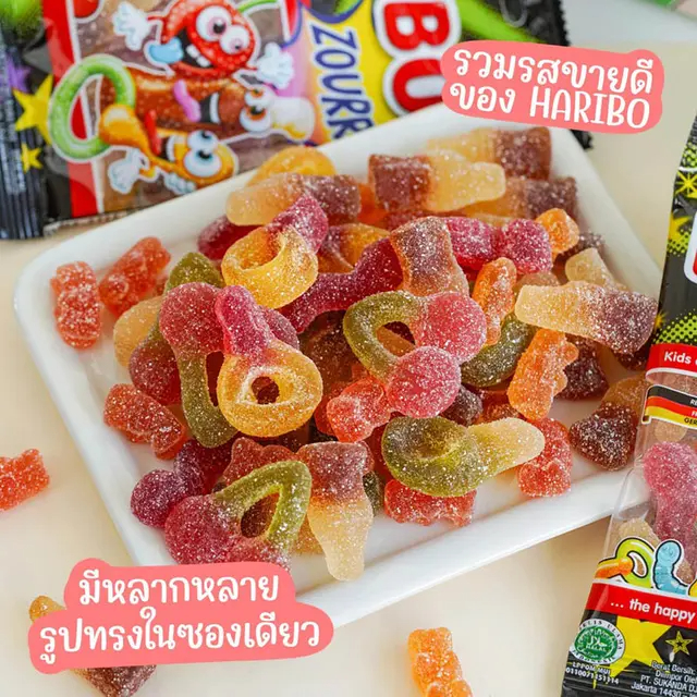 ฮาริโบ้ มิกซ์ซาวร์ Haribo Mix วุ้นเจลาตินกลิ่นผลไม้รวมและโคล่าผสมเลมอน 80 กรัม