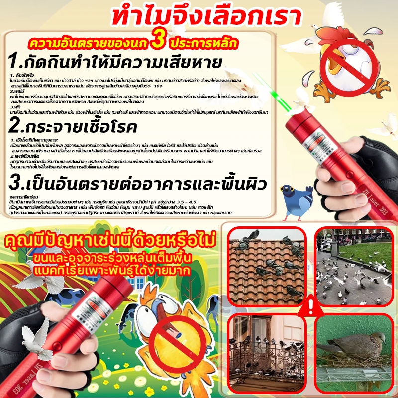 🚀99999Wพลังสูง 1วิไล่นก เลเซอร์ไล่นกพิราบ เลเซอร์แรงสูง แสงเขียว Laser pointer 303+ถ่านชาร์จ 6800mAh+เครื่องชาร์จ