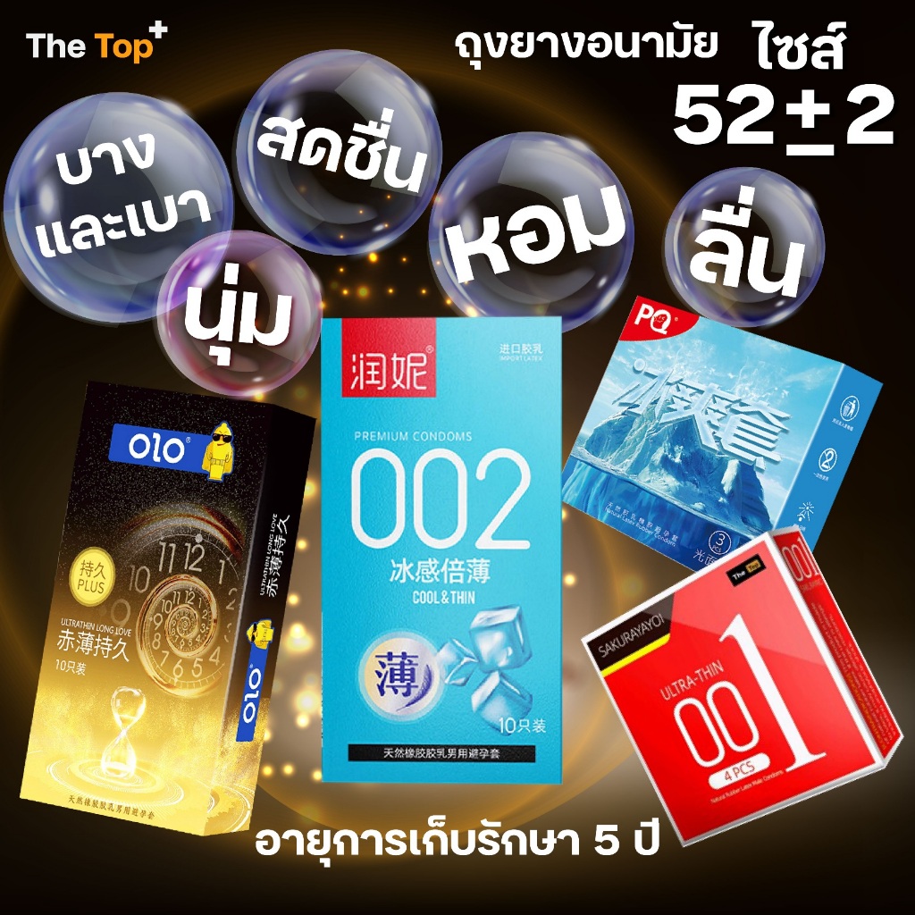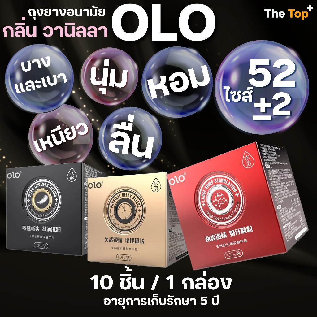 OLO รวมถุงยางอนามัย รุ่น Performa ชนิดเรียบ บาง ปุ่ม ไซส์ 49–52 มม. (ร้าน The Top)