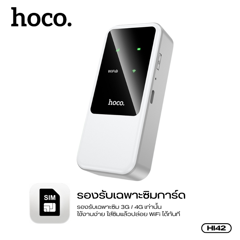 เราเตอร์WiFi แบบพกพา HOCO HI42 รองรับซิมการ์ด 3G และ 4G สัญญาณแรง เชื่อมต่อเร็ว ขนาดเล็ก พกพาสะดวก