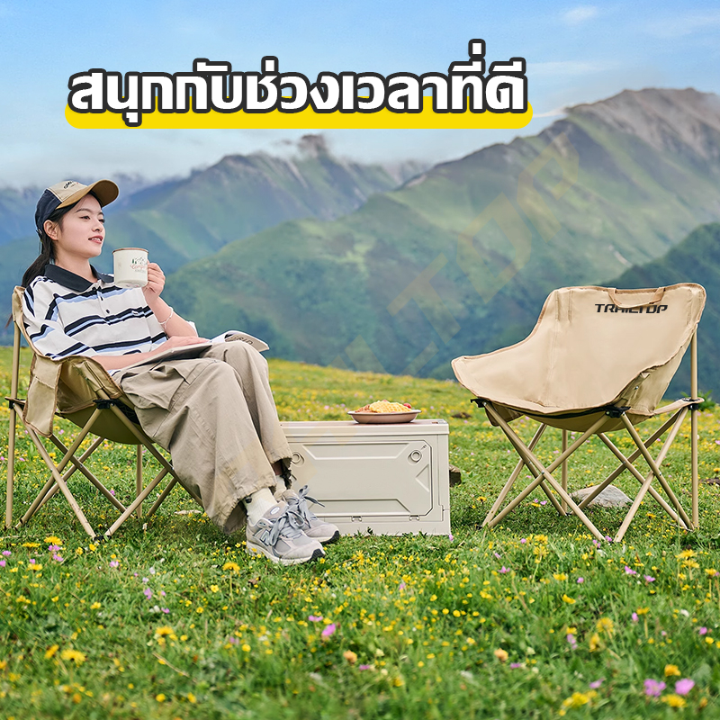 TRAILTOP เก้าอี้แคมป์ปิ้ง เก้าอี้สนามพับได้ แบบพกพา ท่ออลูมิเนียมหนา แถมถุงเก็บ รับน้ำหนัก 300KG