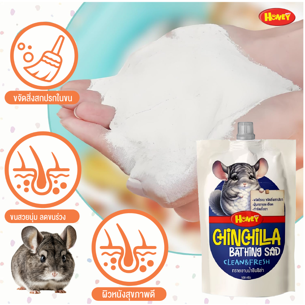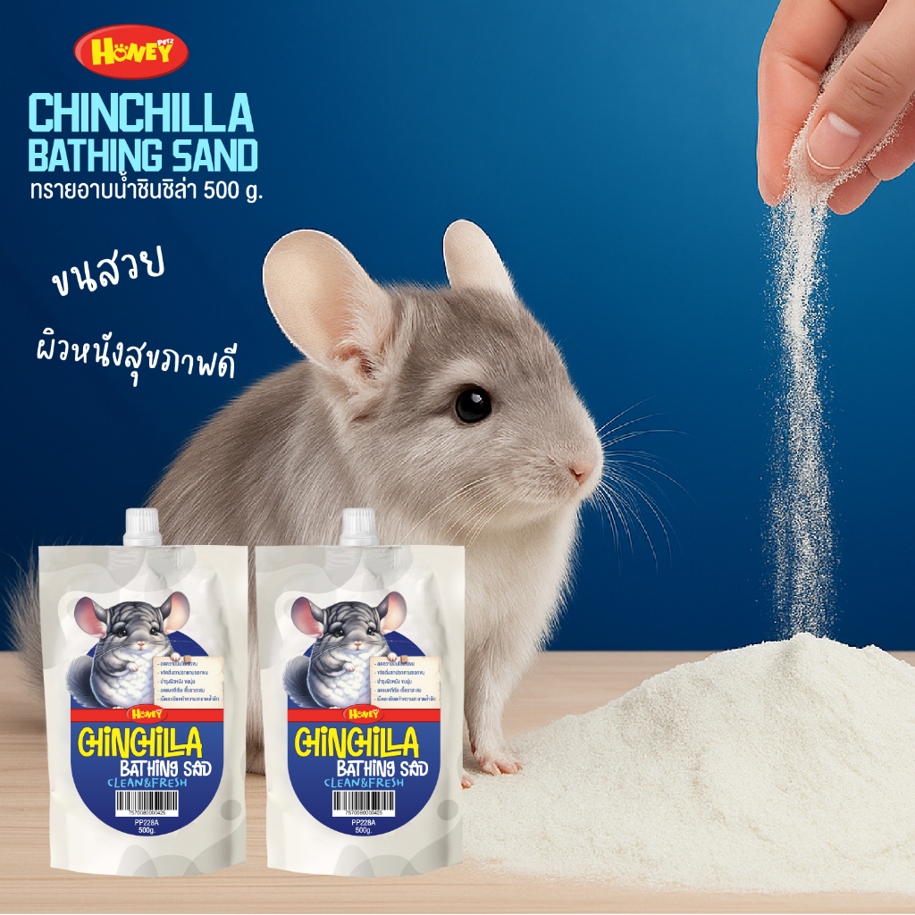 ทรายอาบน้ำชินชิล่า HONEY PETZ ขนาด 500g. เนื้อละเอียด นุ่มไม่บาดผิว ไม่แต่งกลิ่น
