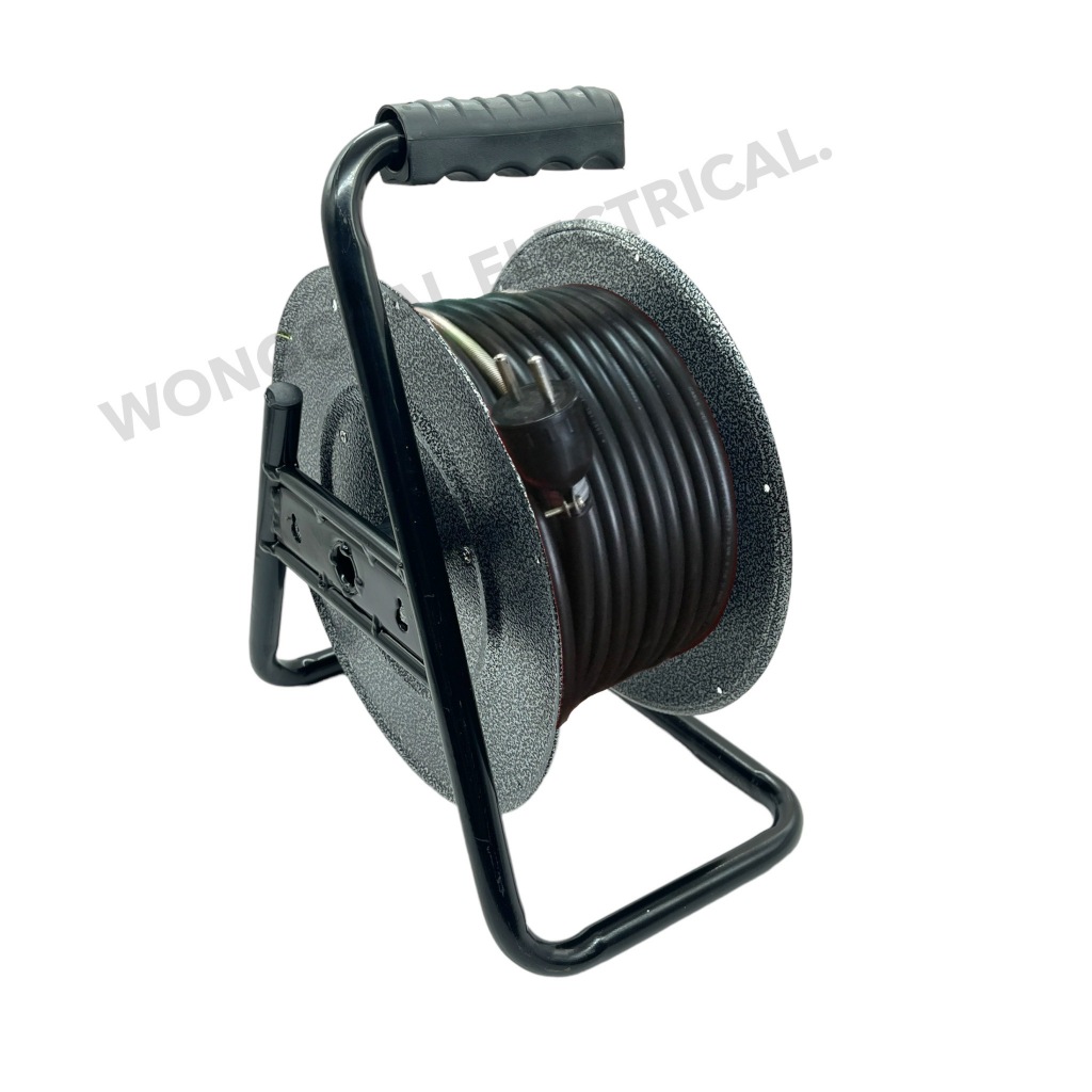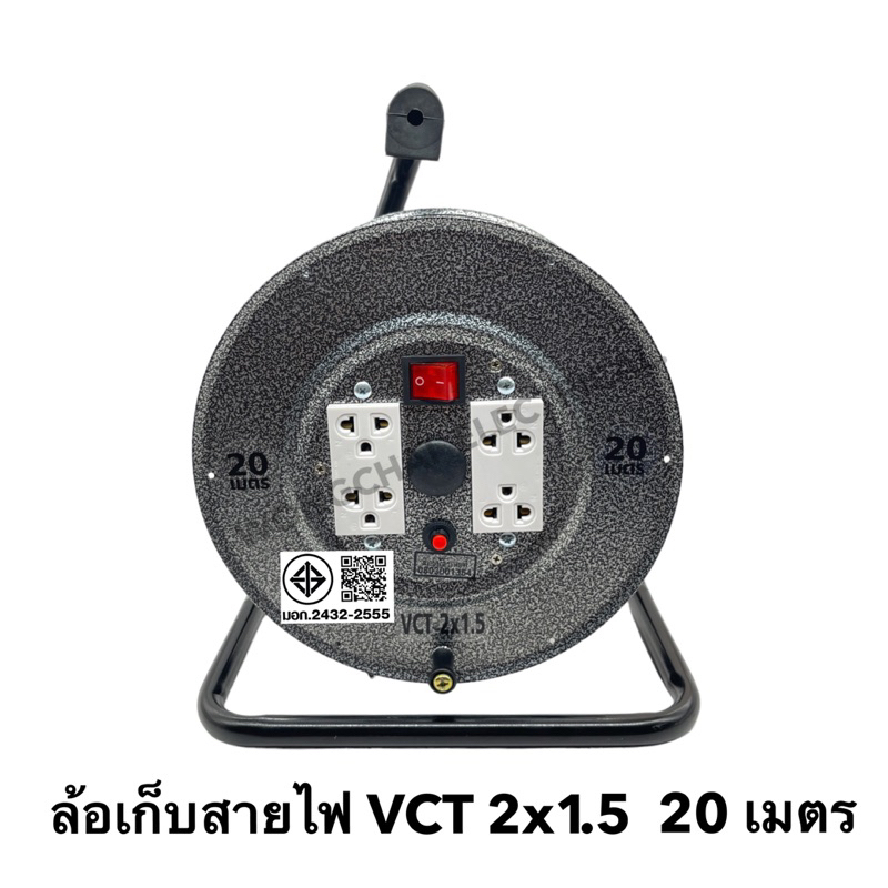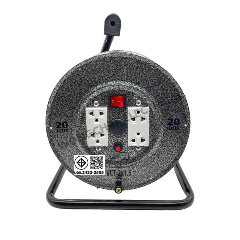 ล้อเก็บสายไฟ VCT 2x1.5 Sq.mm.พร้อมสาย 20 เมตร สีดำ รุ่นมีสวิทซ์ ปลั๊กกราวคู่2ตัว มีฟิวส์ตัดวงจรไฟฟ้า