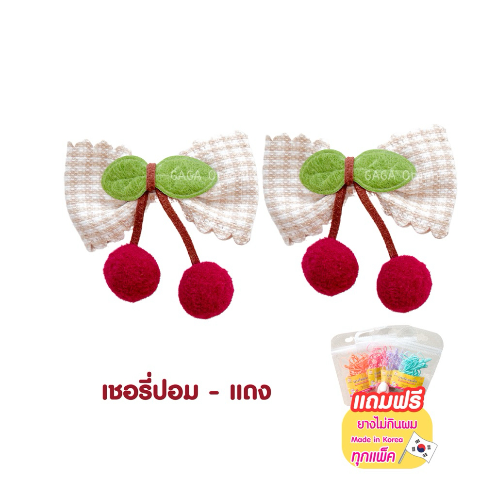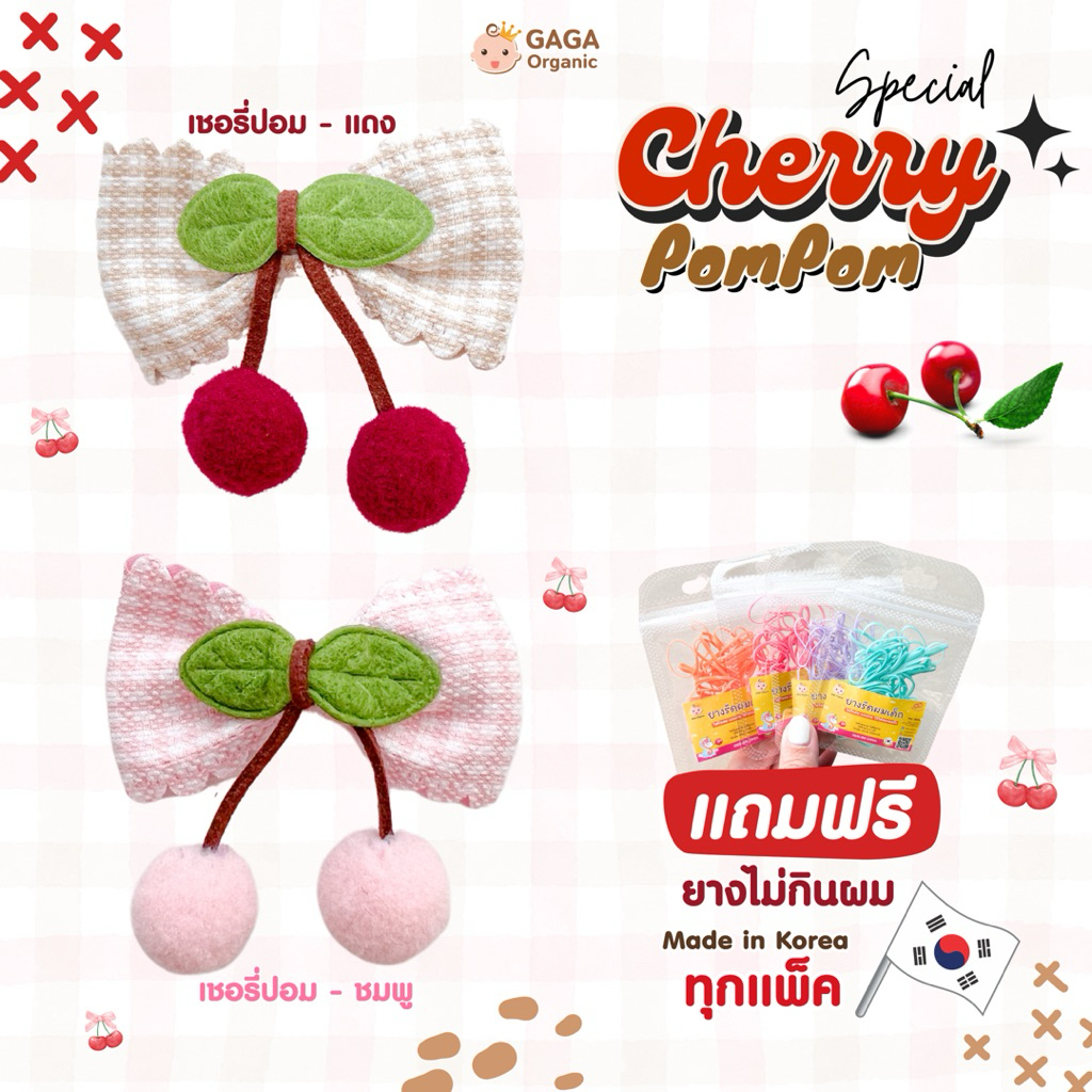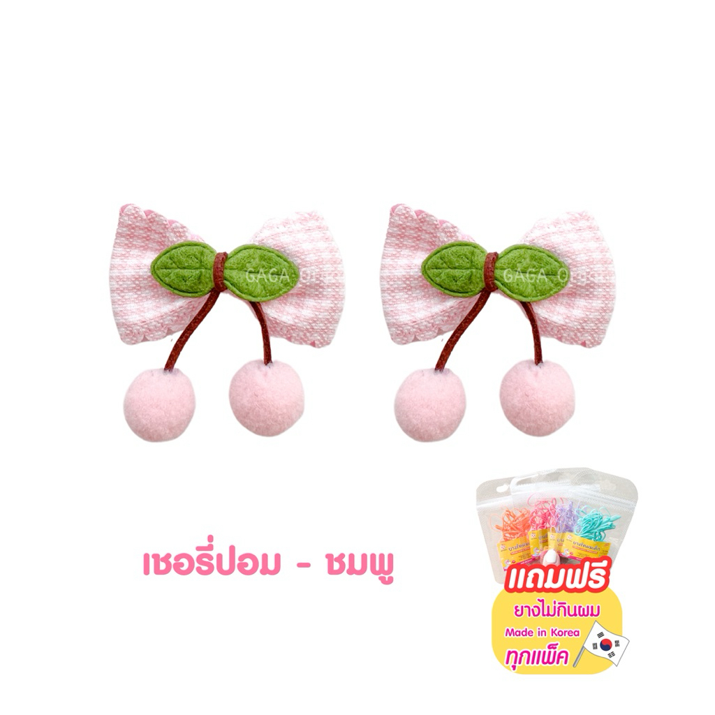 [2ชิ้น/แพ็ค] GAGA กิ๊บติดผมเด็ก Cherry Pom Pom 📌แถมฟรี ยางมัดผมเกาหลี ทุกแพ็ค