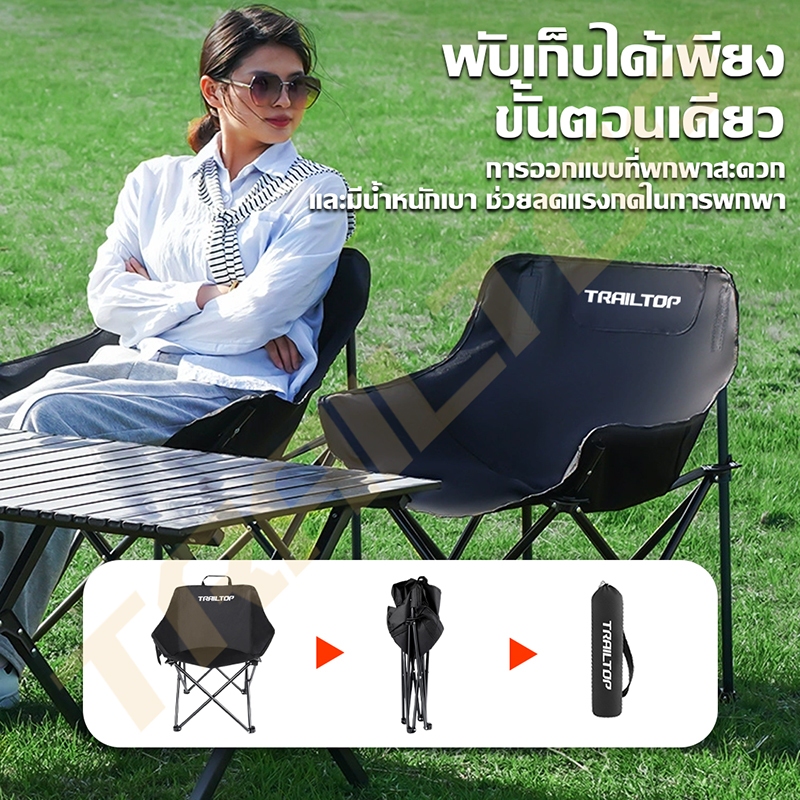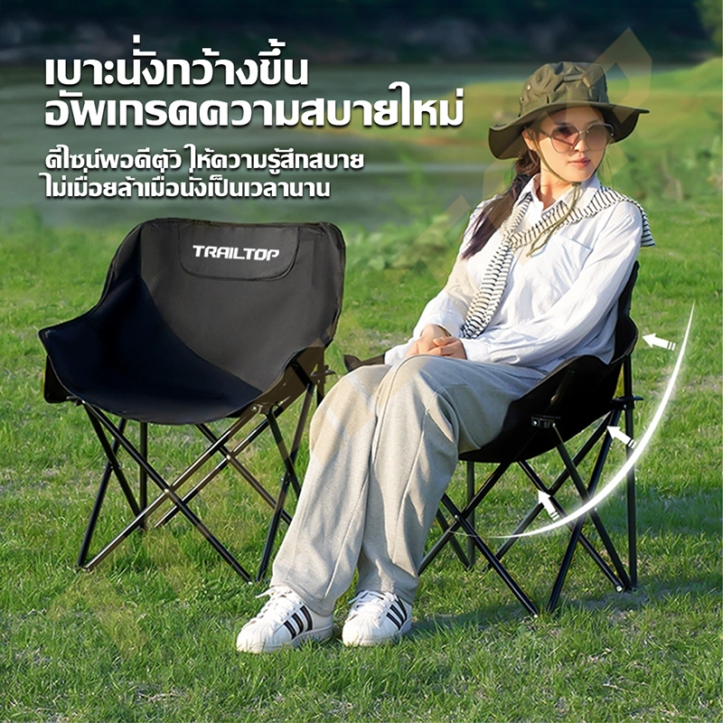 TRAILTOP เก้าอี้แคมป์ปิ้ง เก้าอี้สนามพับได้ รับน้ำหนัก 300KG ท่ออลูมิเนียมหนา แถมถุงเก็บ เก้าอี้สนาม