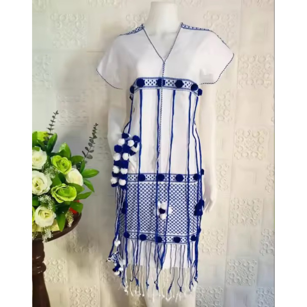 เดรสกะเหรี่ยงผู้หญิง ชุดกะเหรี่ยงทอมือ ลายดอกไม้ ผ้านุ่มใส่สบาย สีสวยสวย พร้อมส่ง