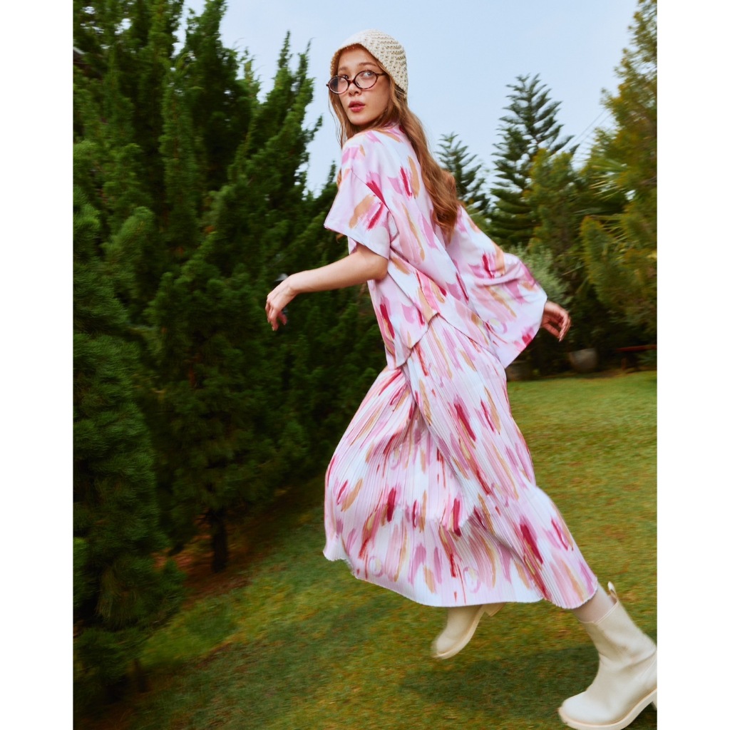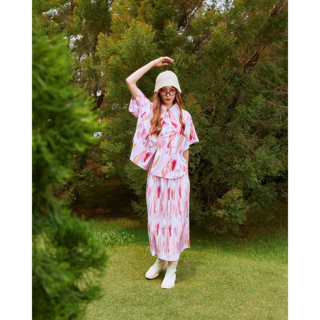 Tilly Milly กระโปรงผู้หญิงพลีทยาวลายบลัช (สีชมพู) - Sunset Palette Collection