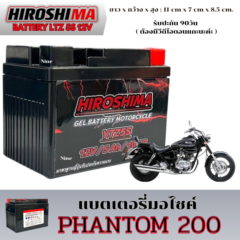 แบตเตอรี่มอไซค์ Phantom 200 ยี้ห้อ Hiroshima 5s 12V แบตแพนท่อม 200 PHANTOM ไม่ต้องชาร์จ พร้อมส่ง