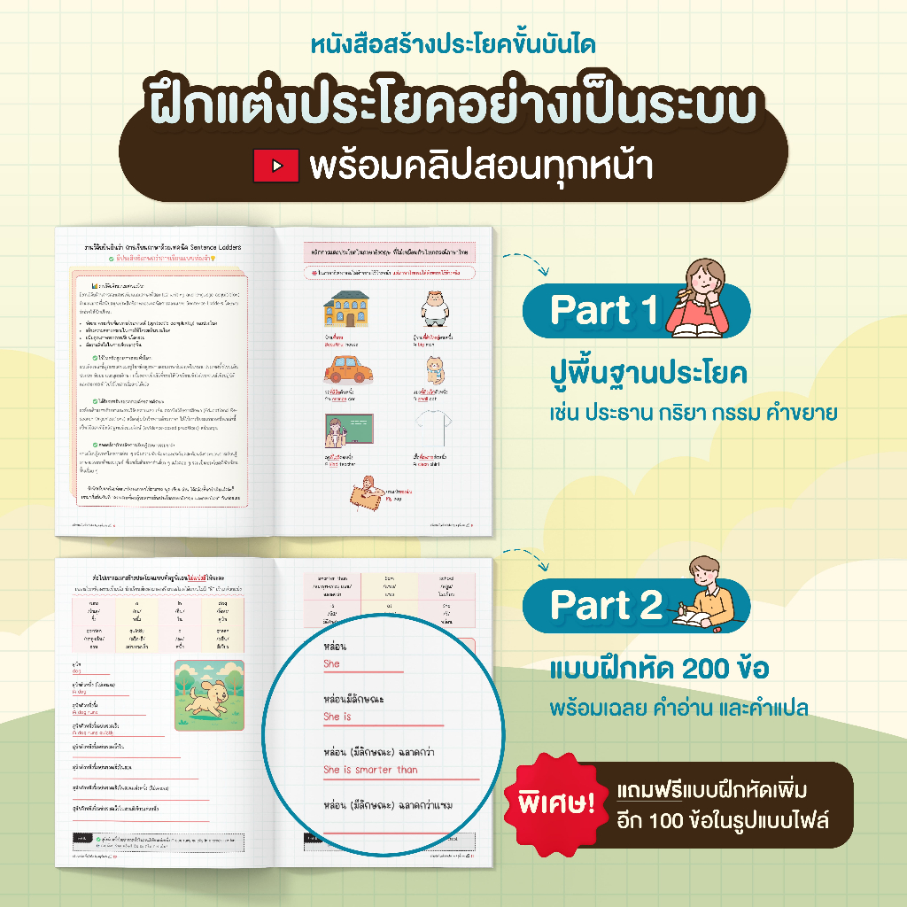 หนังสือ แต่งประโยคแบบขั้นบันได ภาษาอังกฤษ พร้อมคลิปสอน 6 ชม. โดย ครูพี่แอน Sentence Ladders