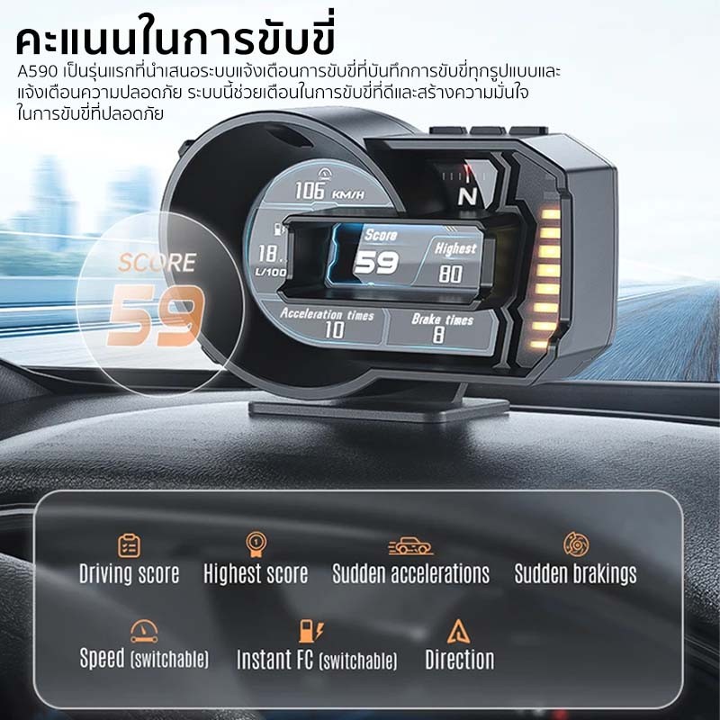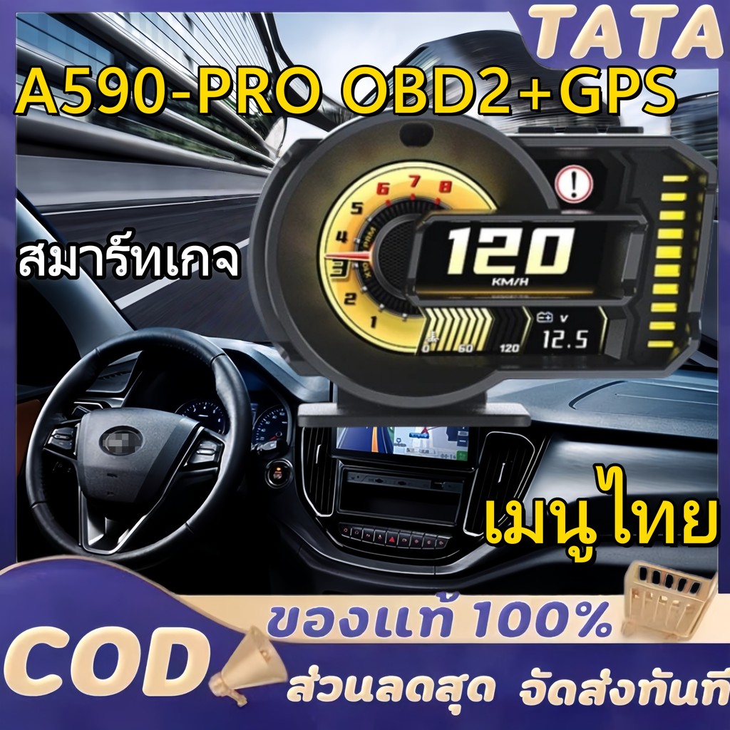 OBD2+GPS สมาร์ทเกจ A590 Plus ของแท้ - เมนูไทย ใช้ง่าย วัดค่าเรียลไทม์ เกจดิจิตอลรถยนต์ Smart Gauge Digital Meter