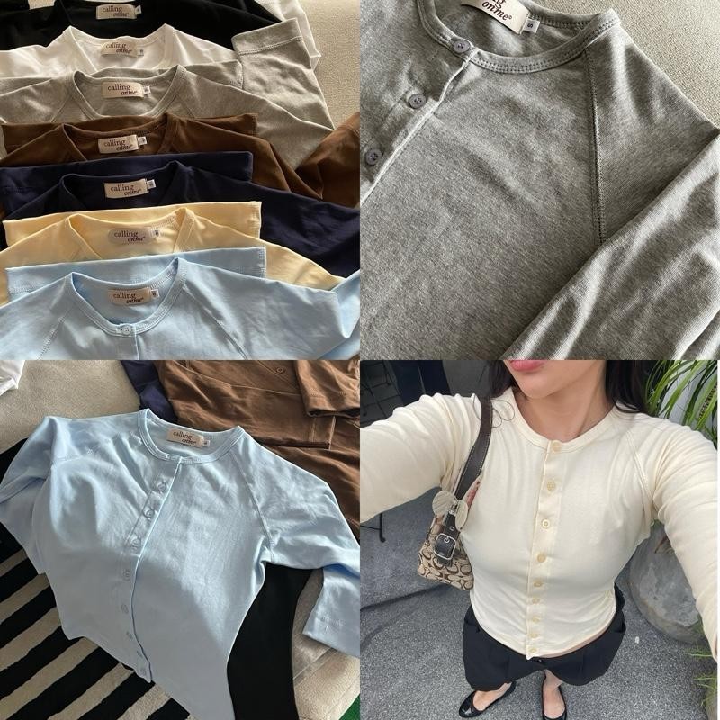 callingonme-cutty seam half sleeve top เสื้อแขนยาวศอก ดีไซน์ตะเข็บนอก ทรงสวยผ้านุ่มเข้ารูปกระดุมยาว