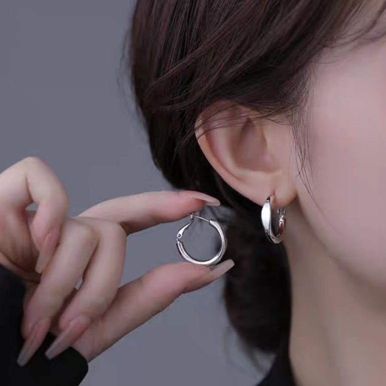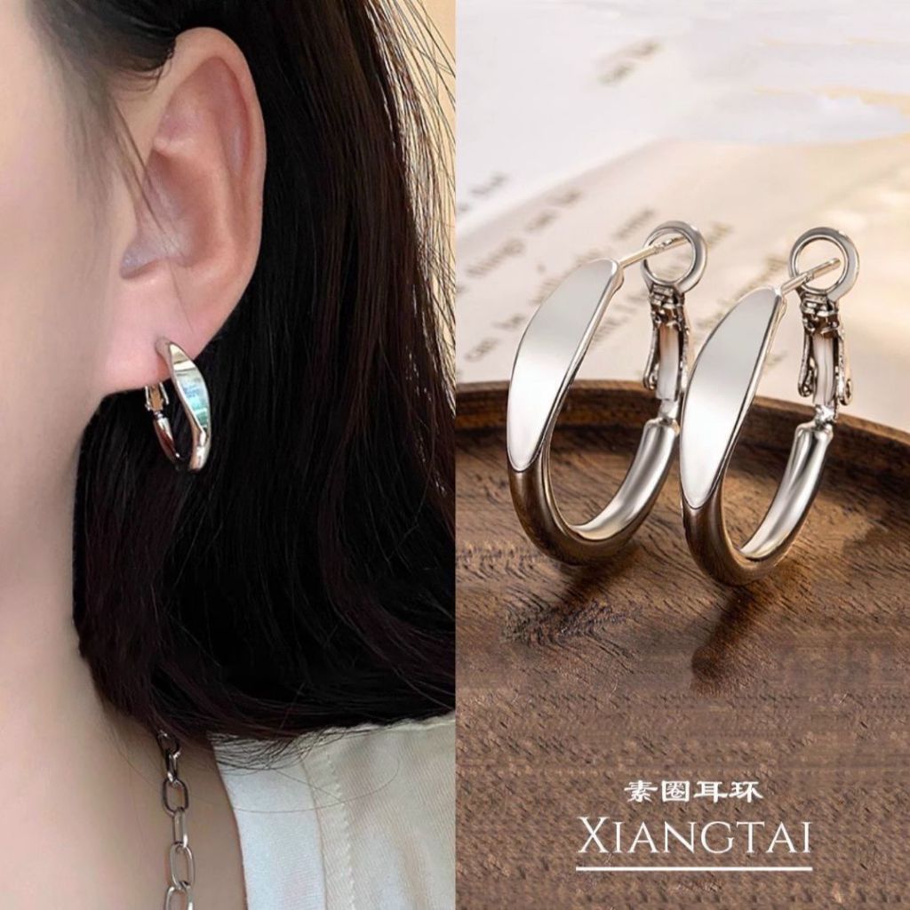 S999 เข็มเงินไม่สม่ําเสมอต่างหูห่วงธรรมดาหญิง Niche ins ต่างหู