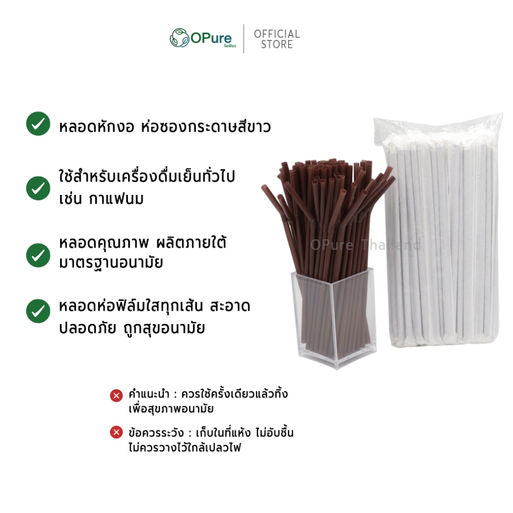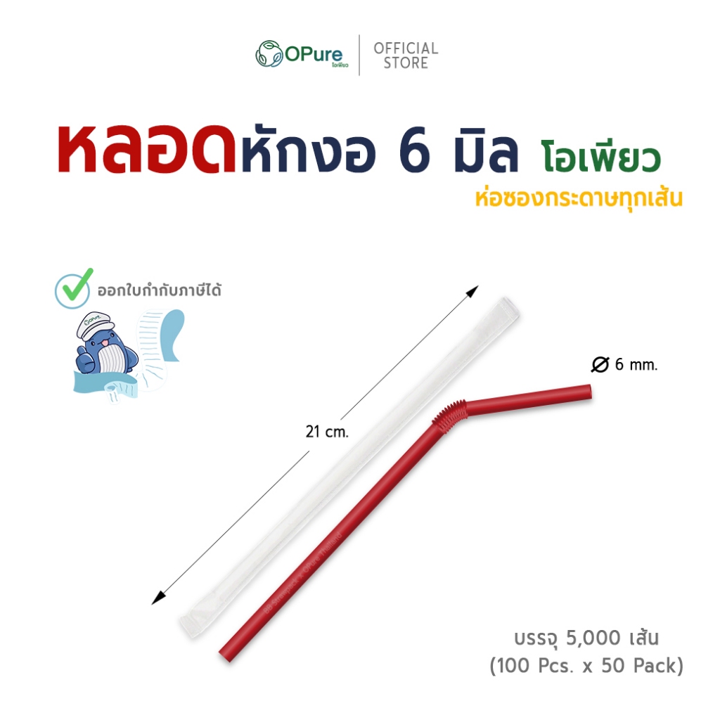 (5,000 เส้น) หลอดงอ 6 มิล ยาว 21 ซม. *ห่อซองกระดาษ หลอดพลาสติก OPure สำหรับเครื่องดื่มเย็น (ยกลัง)