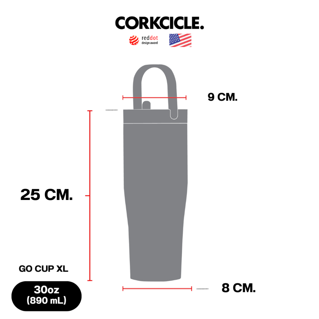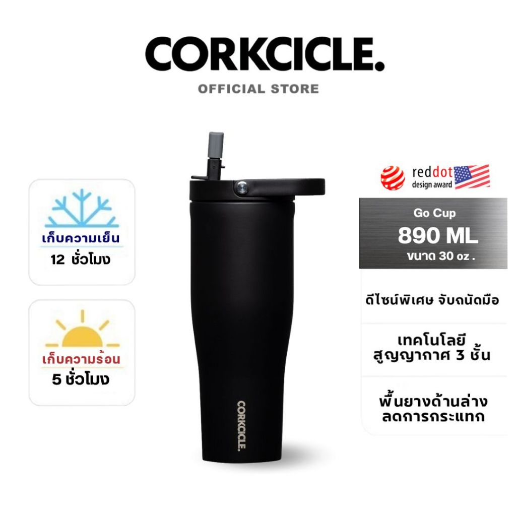 Corkcicle กระบอกน้ำ 30 oz (885 ml) Go Cup Tumbler | Matte Black ดำ | Keeps Cold เก็บเย็น 12hrs | แก้วพกพา ขวดน้ําพกพา
