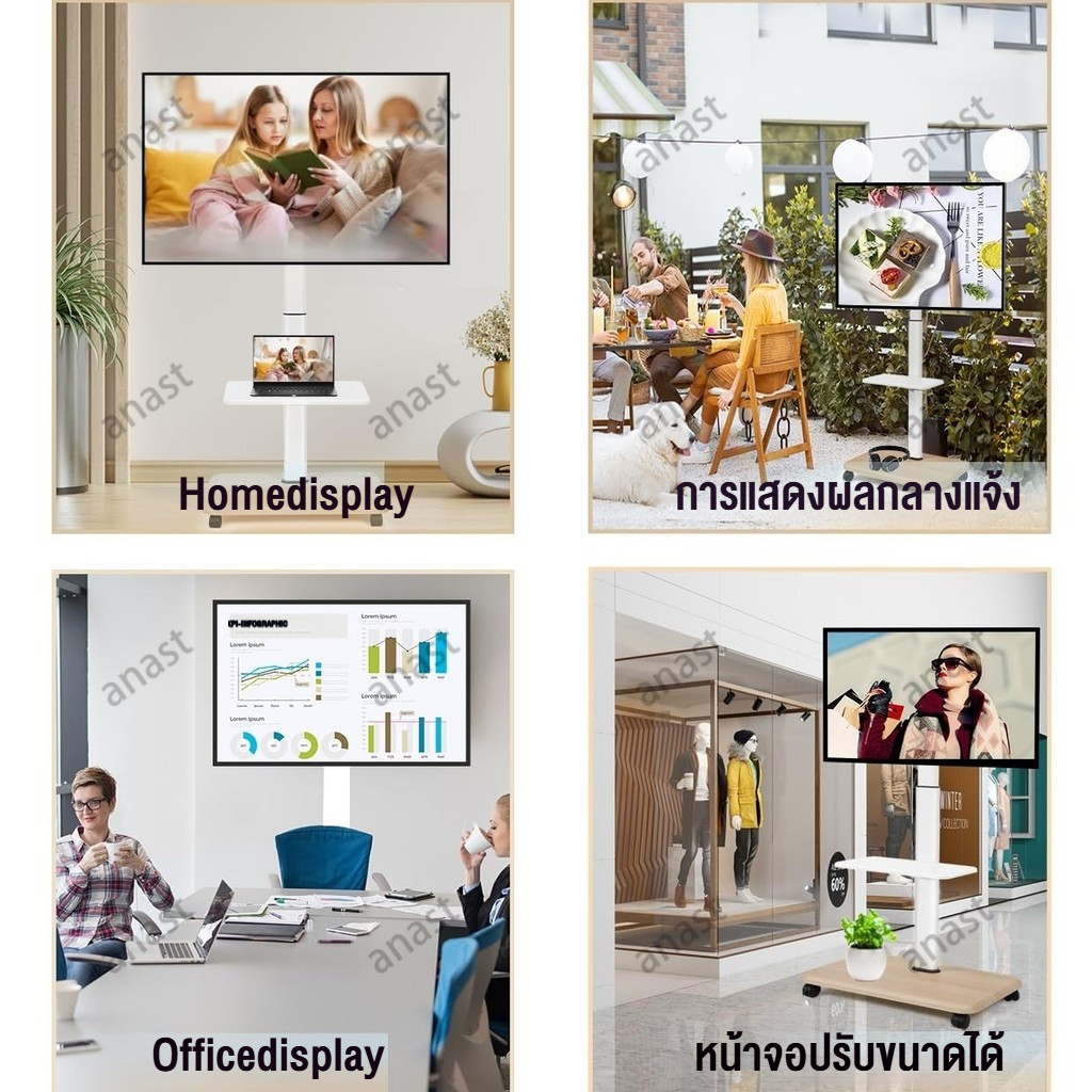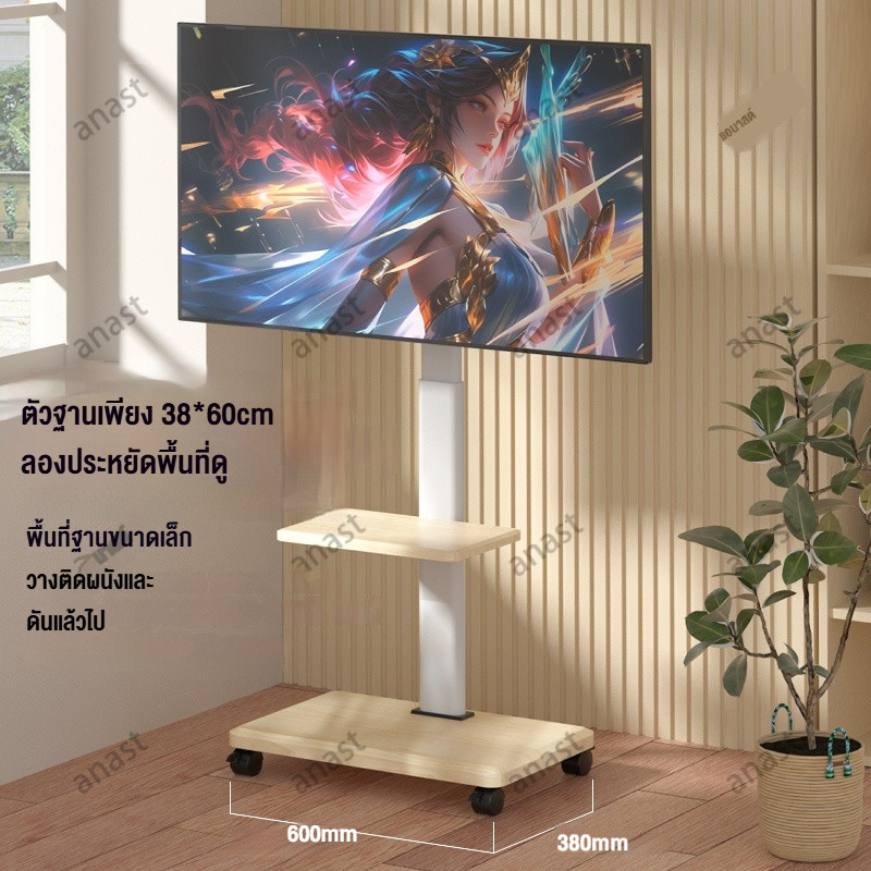 ขาตั้งทีวีมีล้อเลื่อน 32-70 นิ้ว สากล ขาตั้งทีวี พร้อมถาด การหมุน 30° ปรับความสูงได้ ตู้วางทีวีไม้ศิลปะ
