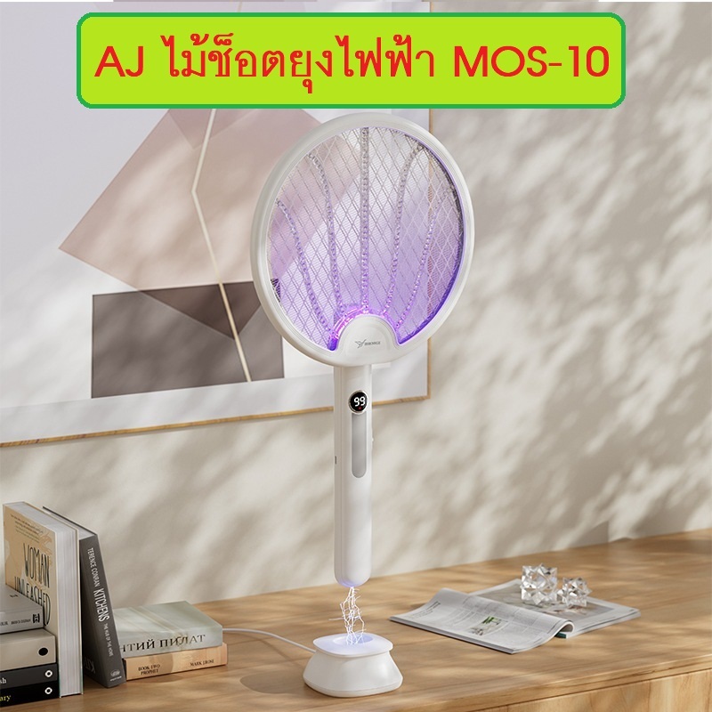 AJ ไม้ช็อตยุงไฟฟ้า ELECTRIC MOSQUITO SWATTER MOS-10 ไม้ตียุง โคมดักยุง 2IN1 ในอันเดียว รับประกัน 1ปี