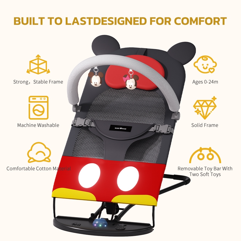 Disney เก้าอี้โยกเด็ก เก้าอี้เปลโยก เปลไกวเด็ก พร้อมของเล่นห้อย ปรับระดับได้ พับเก็บง่าย รับน้ำหนักได้ 18kg
