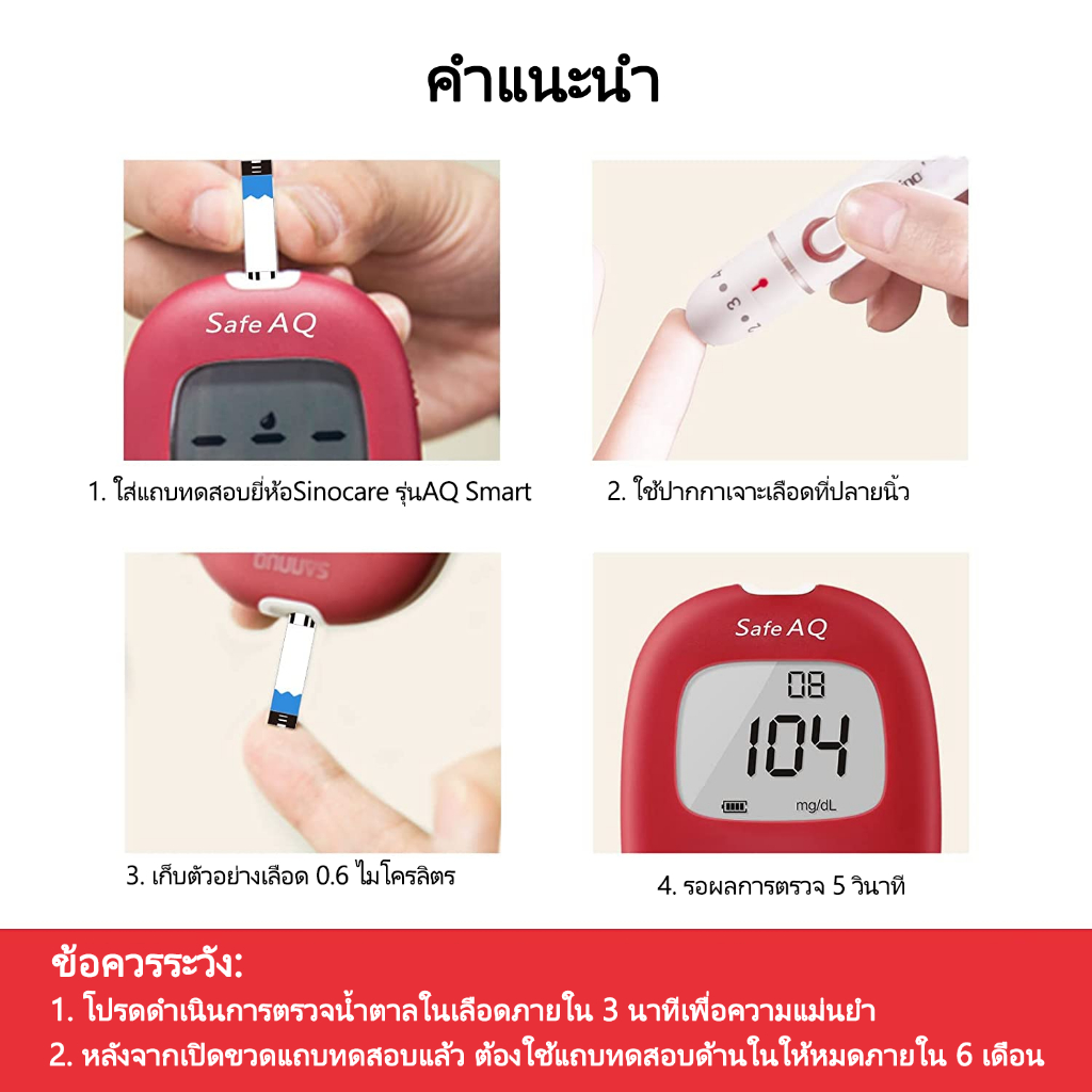 Sinocare(ซิโนแคร์ไทย ) เฉพาะตัวเครื่องตรวจวัดระดับน้ำตาล รุ่น Safe AQ Smart ได้มาตรฐานสถานพยาบาล ผู้ผลิตและนำเข้าโดยตรง