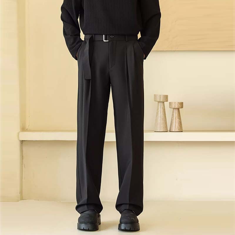 กางเกงสูท ทรงหลวม กางเกงทรงกระบอกใหญ่ ทรงหลวม ผู้ชาย กางเกงสแล าหนานุ่ม อยู่ทรง ยับยาก ไม่พริ้ว ชาย หญิงใส่ได้