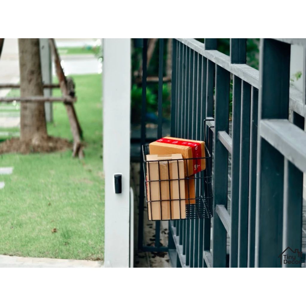 ตะกร้าแขวนเหล็กเคลือบพลาสติก PE ใส่พัสดุหน้าบ้าน ขนาดตะขอ 4.3 ซม. แข็งแรง กันสนิม สีดำ 🧺📦